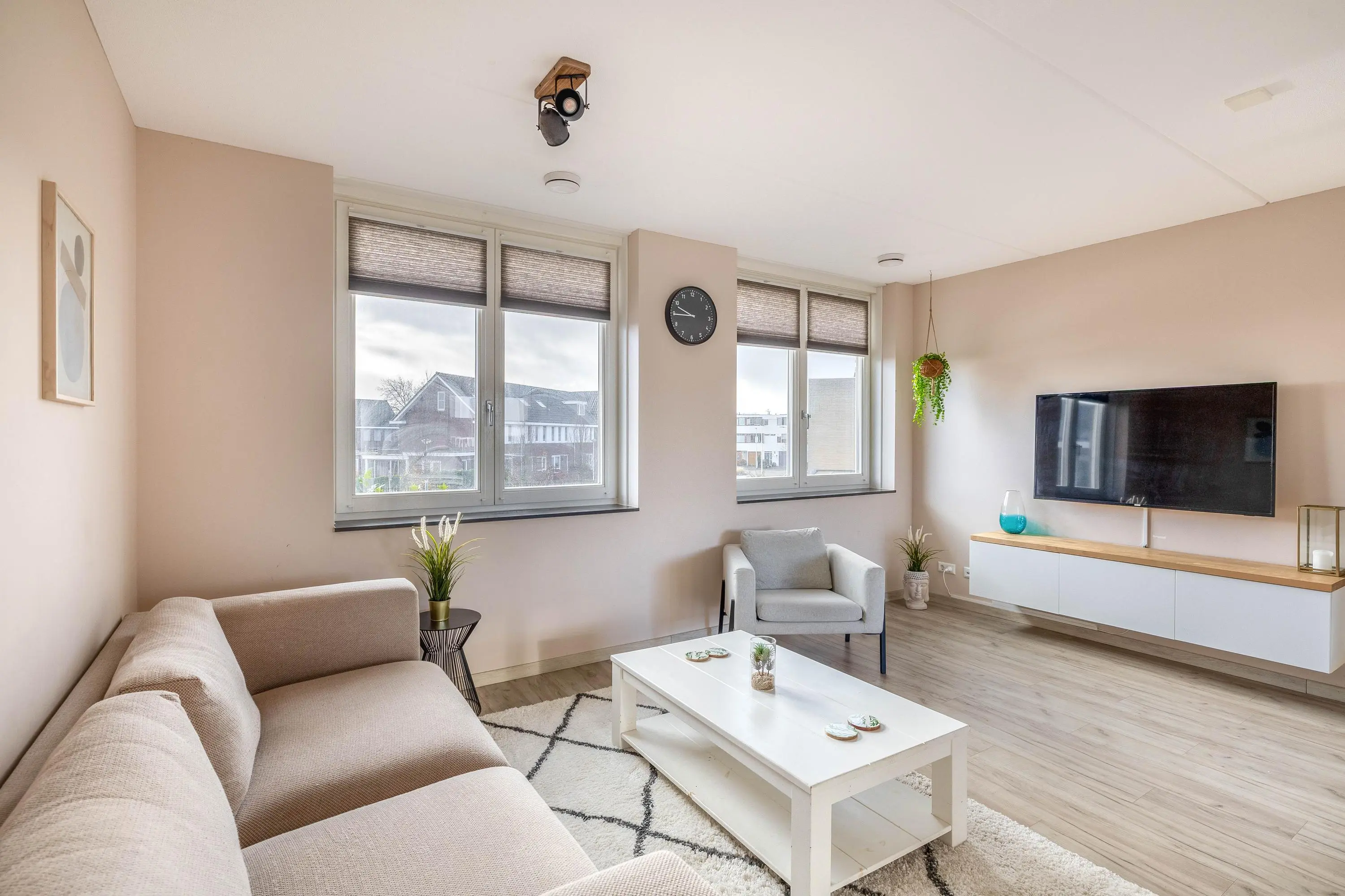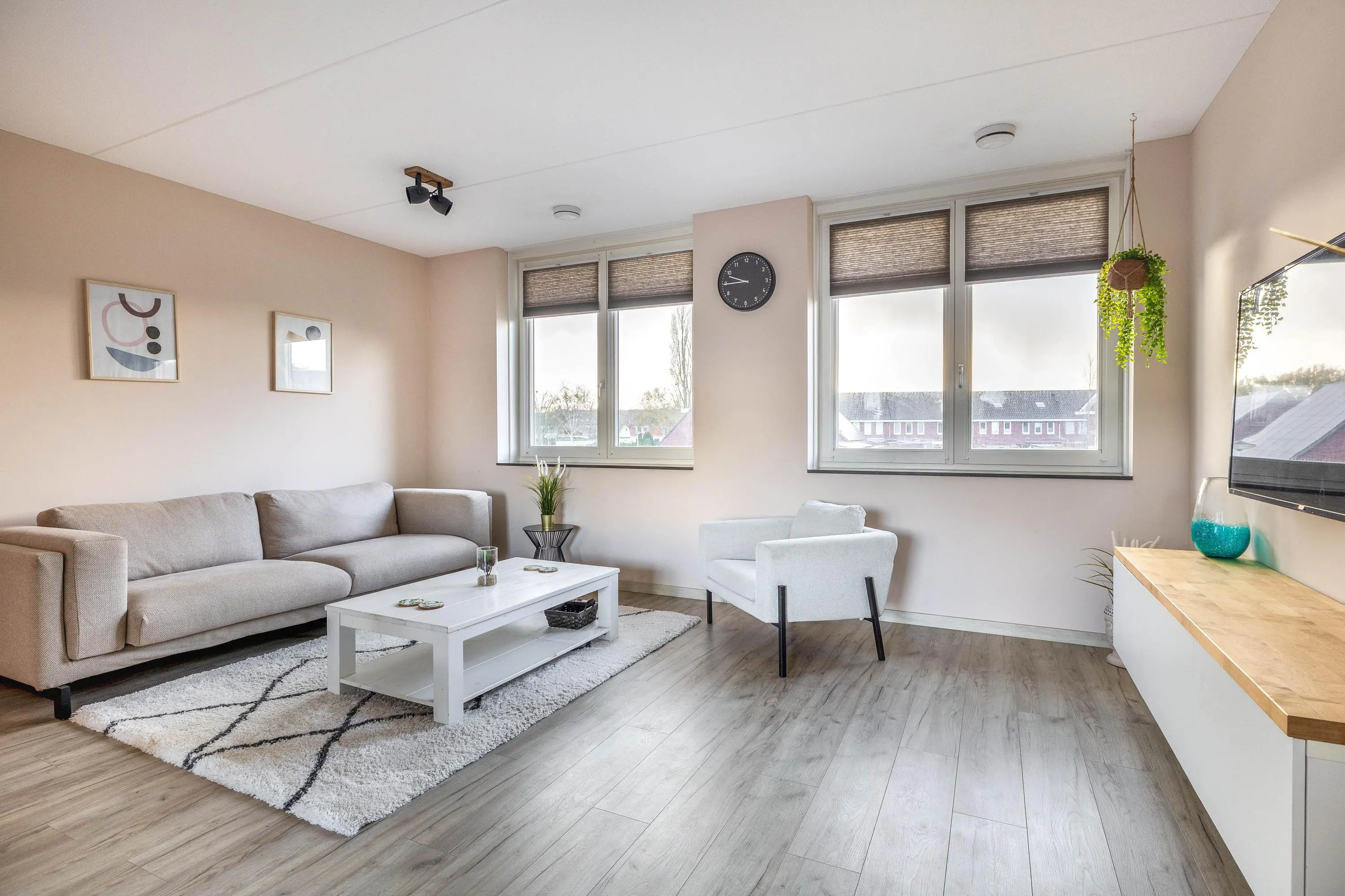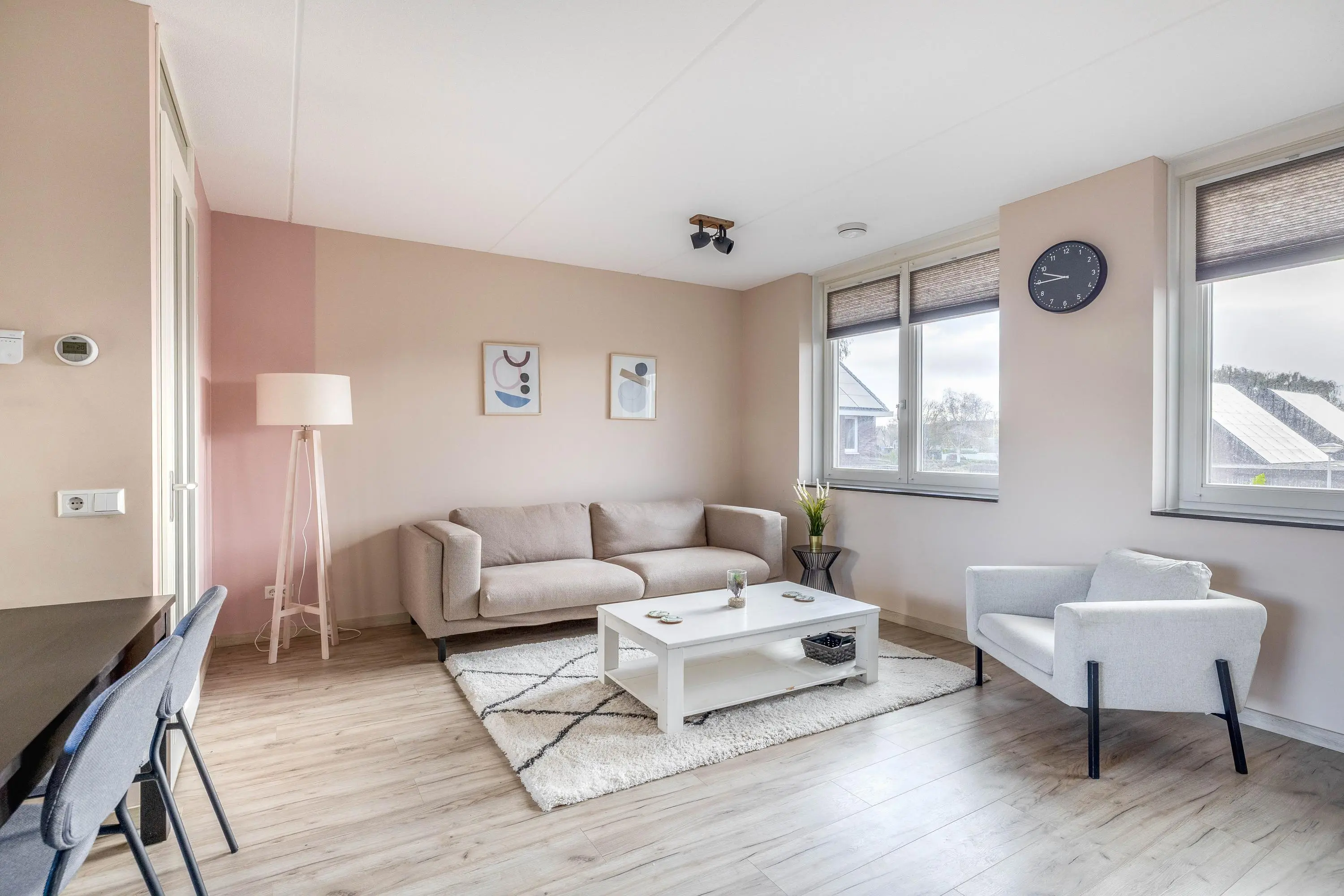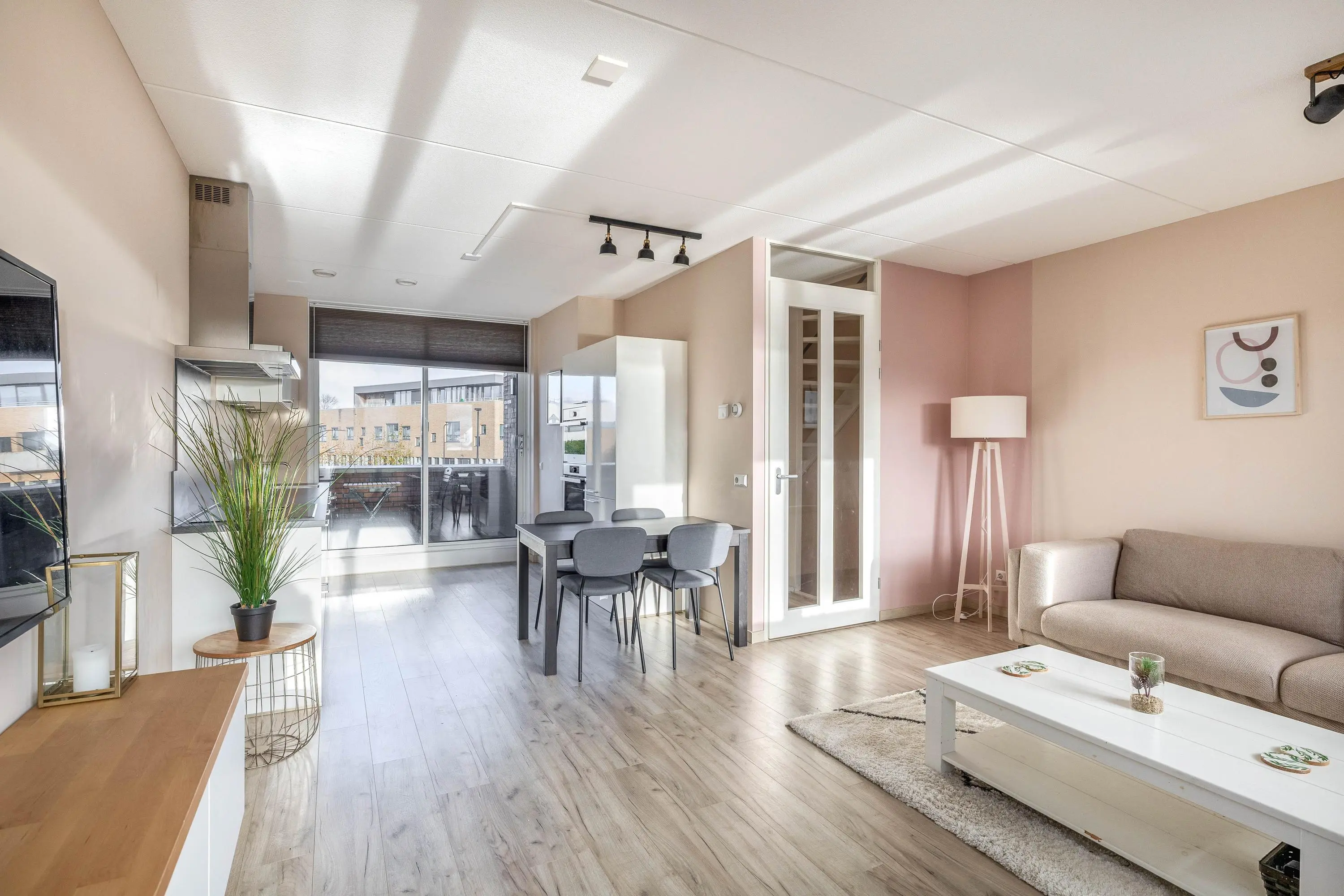 De living is ruim opgezet en voelt prettig licht aan dankzij de aanwezige ramen. Er is voldoende ruimte voor een comfortabele zithoek én een eettafel.
