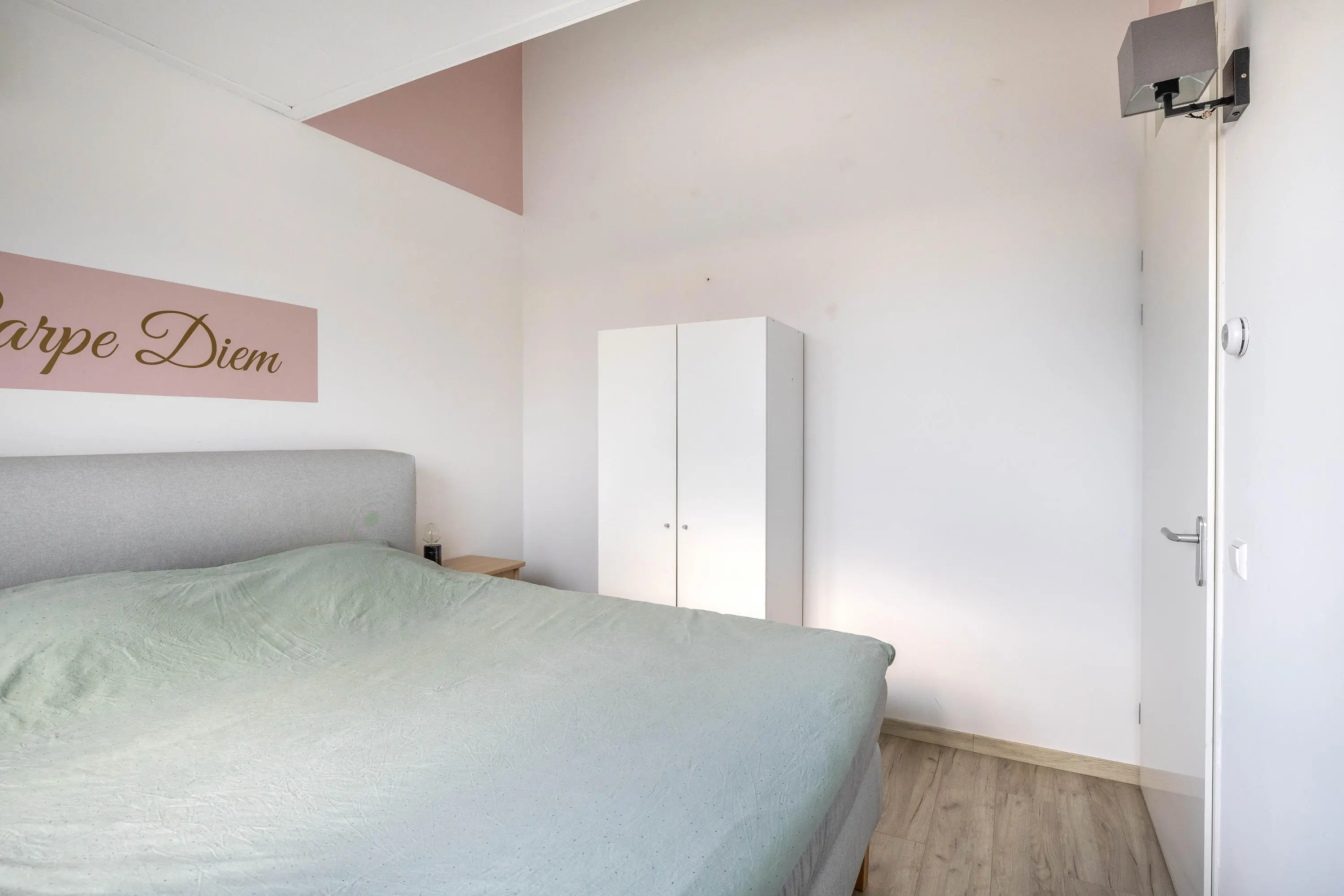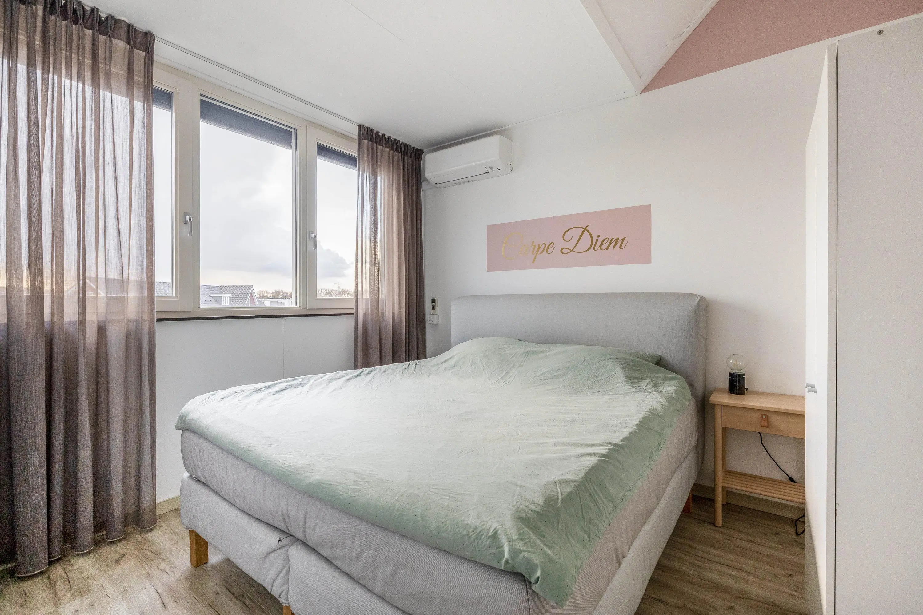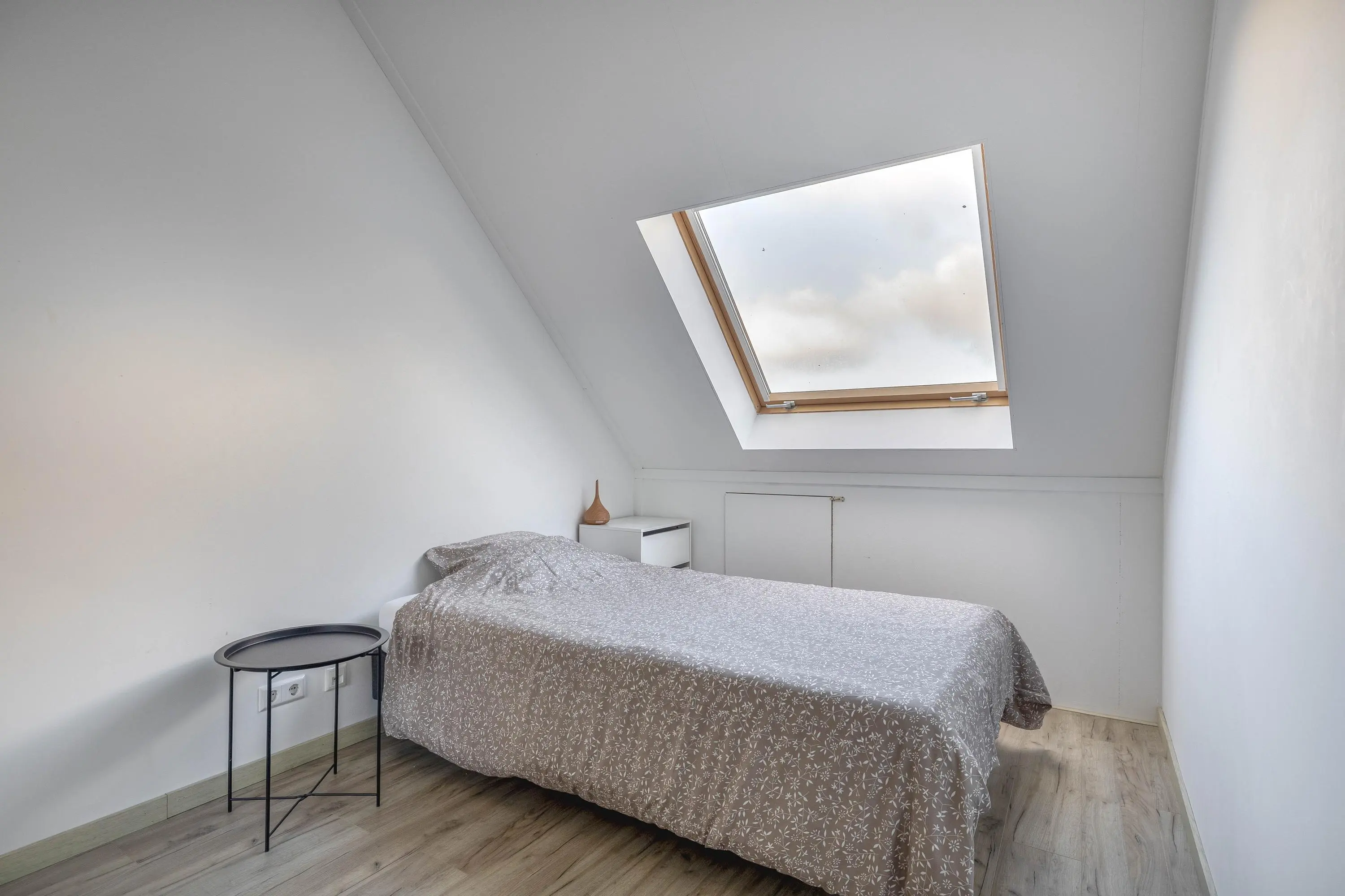 De hoofdslaapkamer ligt aan de achterzijde en heeft een oppervlakte van circa 10m². Deze kamer is daarnaast voorzien van airconditioning voor extra comfort. De tweede slaapkamer ligt aan de voorzijde, meet eveneens ongeveer 10m² en is uitgerust met een dakraam en bergruimte achter het knieschot.