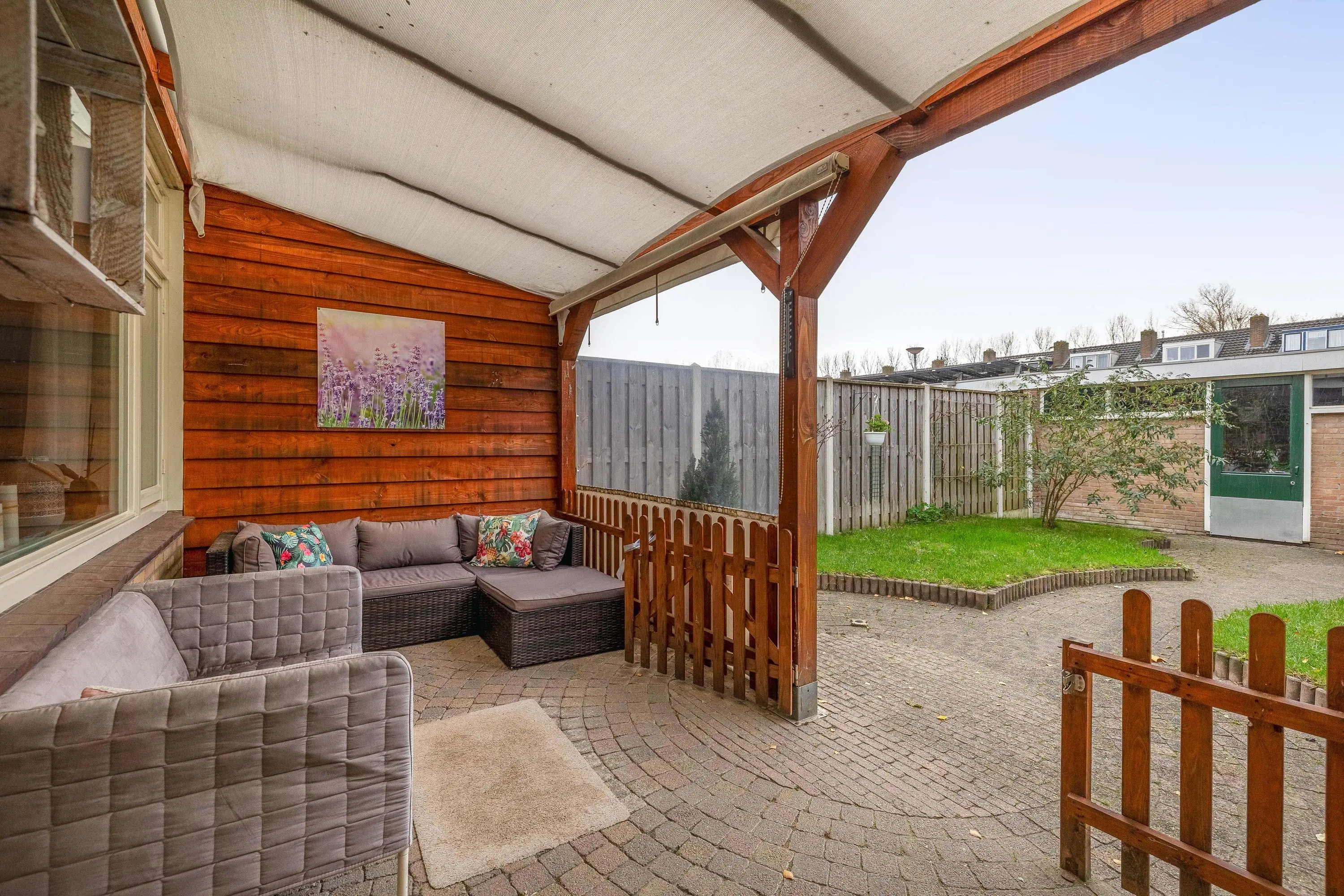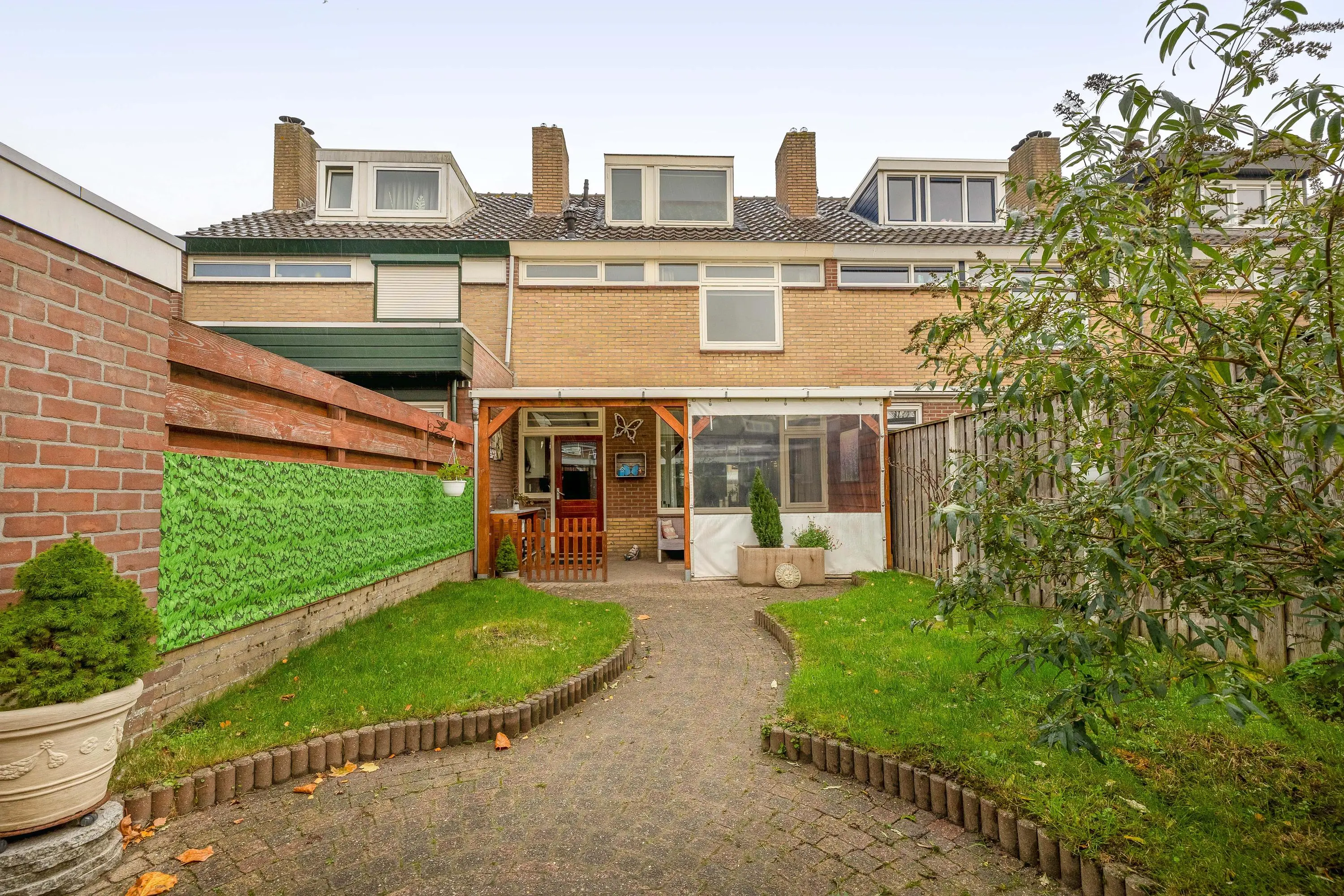 De royale tuin is gelegen op het zuiden, waardoor u vrijwel de hele dag van de zon kunt genieten. De tuin beschikt over een houten overkapping, ideaal voor beschutting op zonnige of regenachtige dagen. De rest van de tuin is fraai bestraat met tegels en voorzien van groene borders. Achterin bevindt zich een stenen berging van circa 8,5m² met elektra. Daarnaast is er een buitenkraan aanwezig en is de tuin bereikbaar via een achterom.