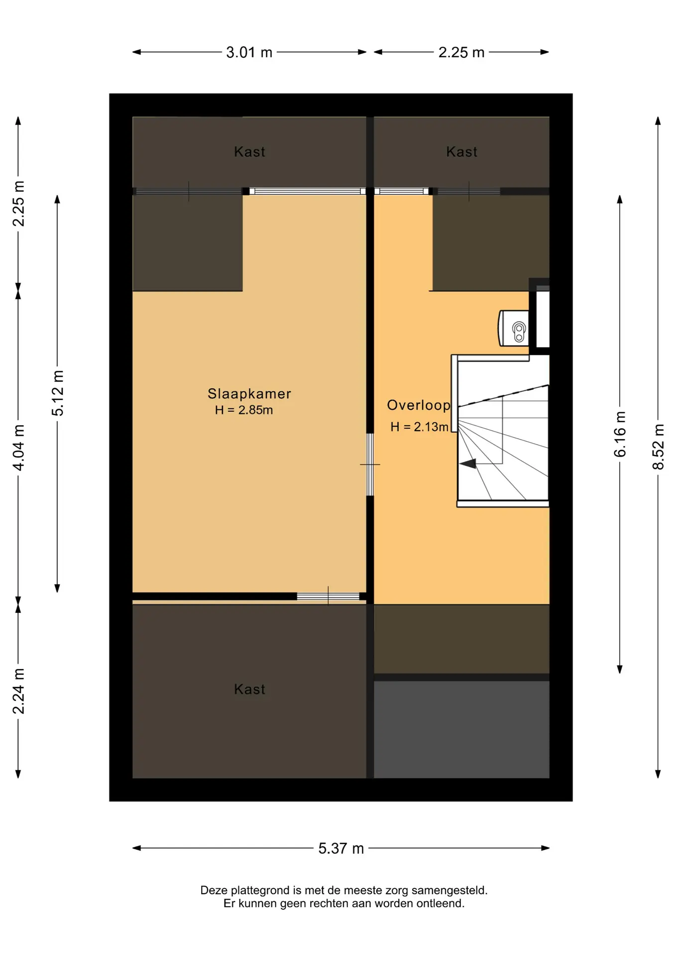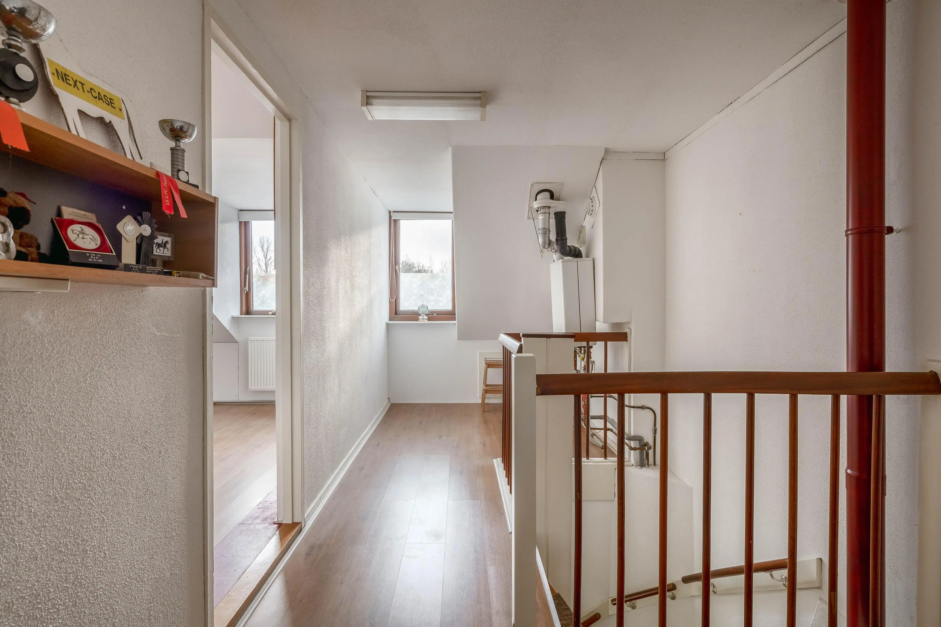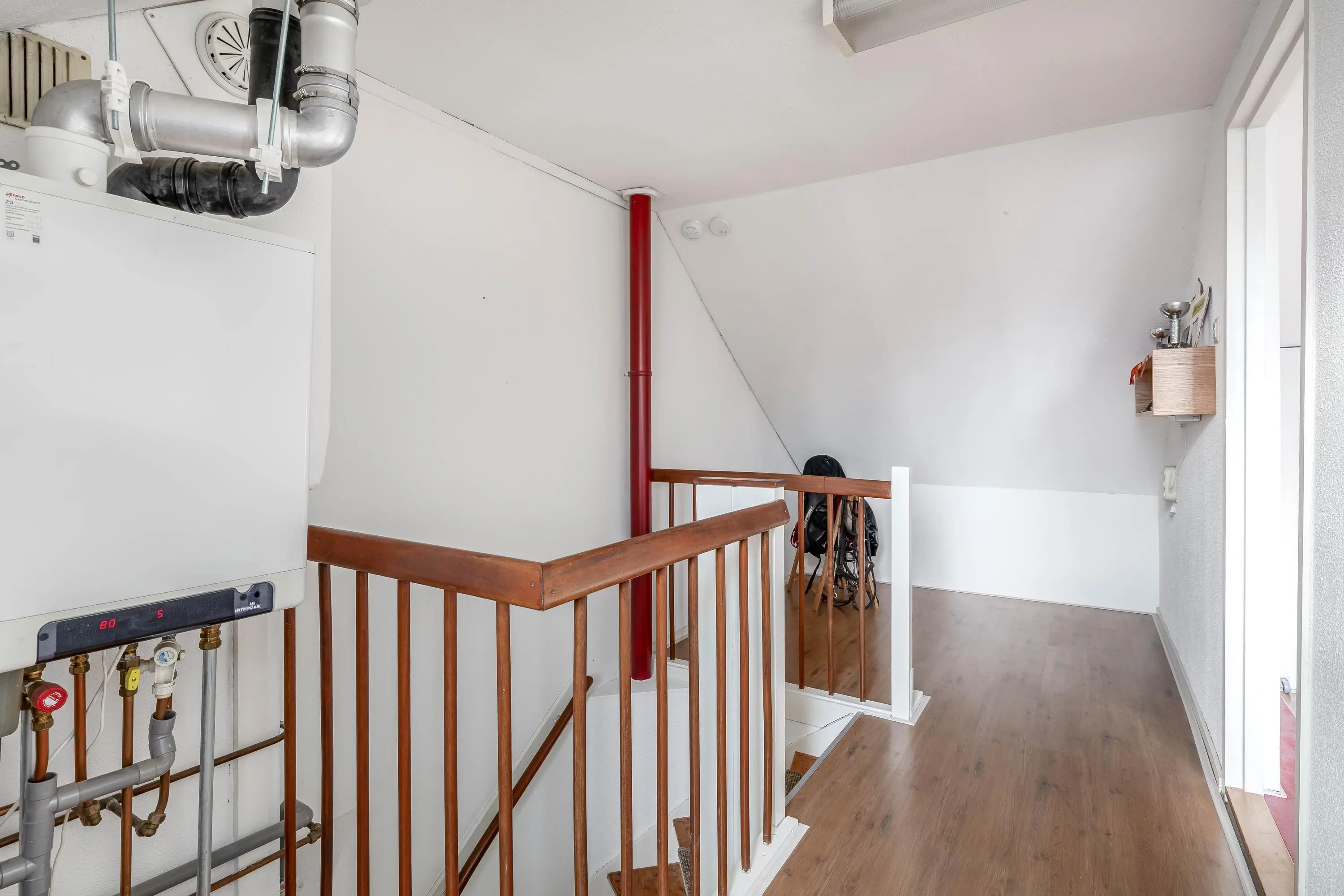 De tweede verdieping is voorzien van een laminaatvloer die doorloopt in de slaapkamer. Op de voorzolder vindt u de CV-opstelling en keurig afgetimmerde knieschotten, waardoor er volop extra bergruimte beschikbaar is.