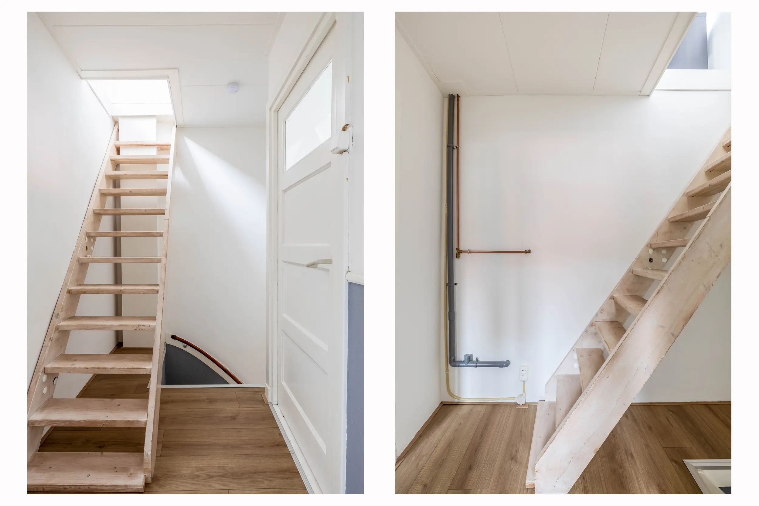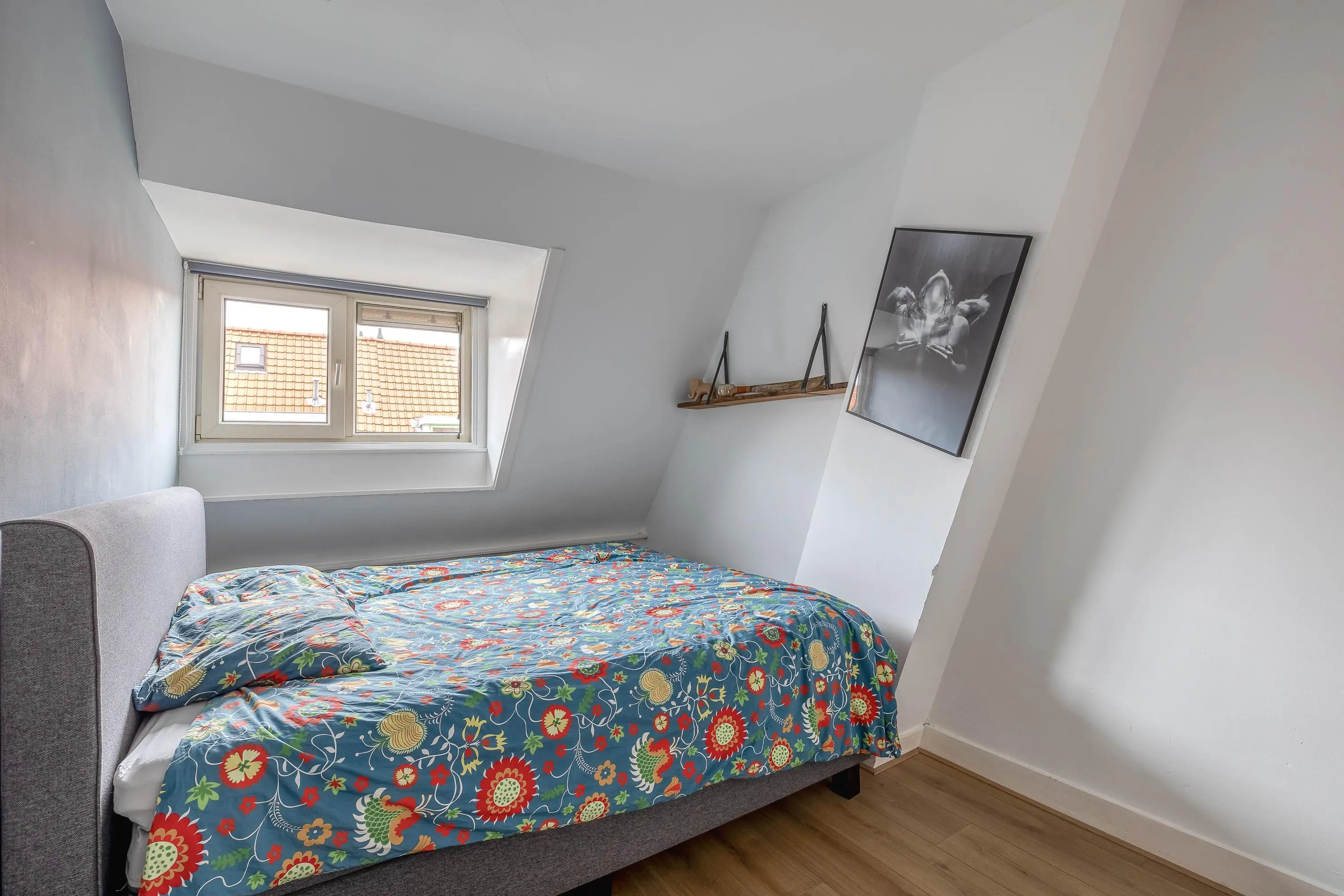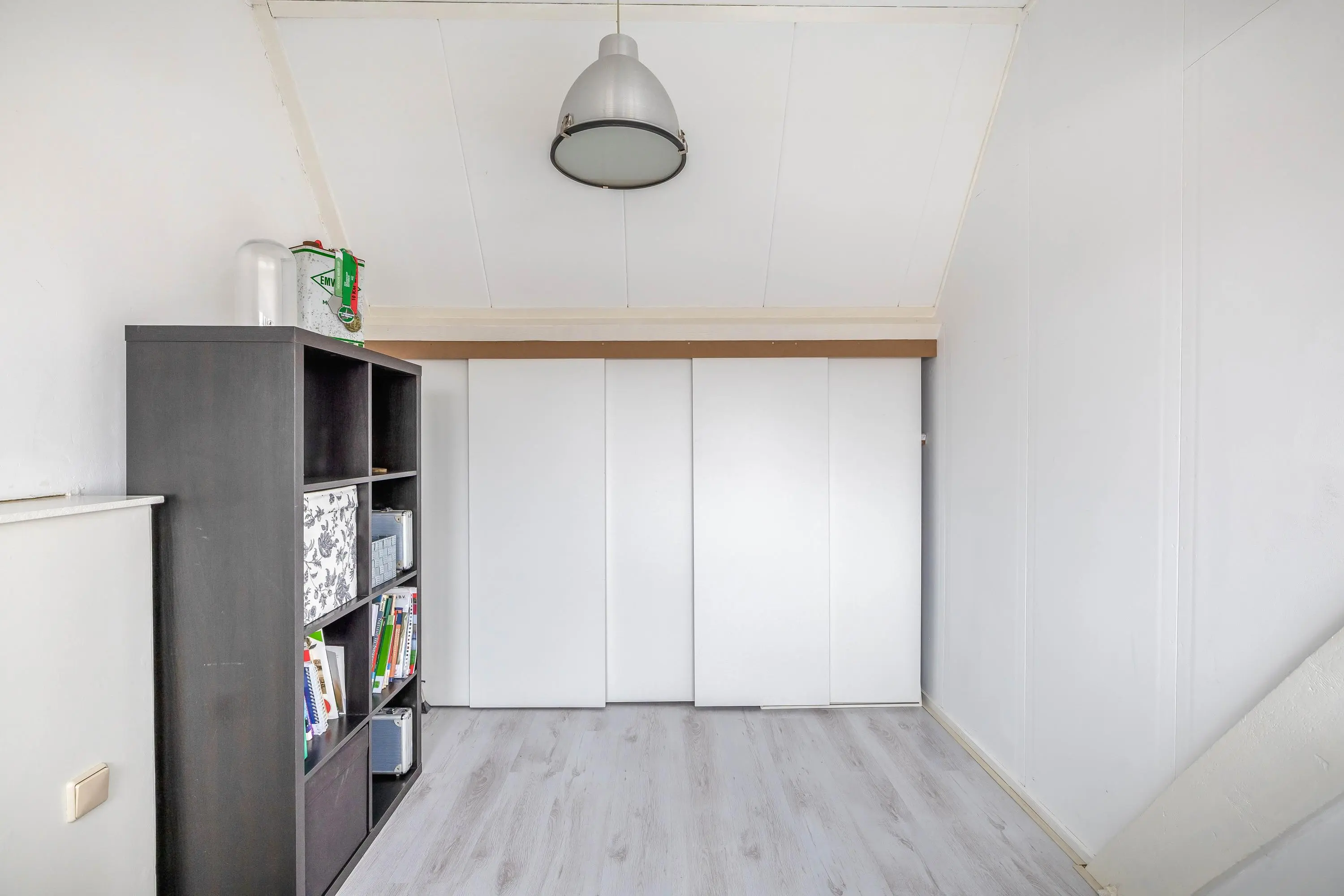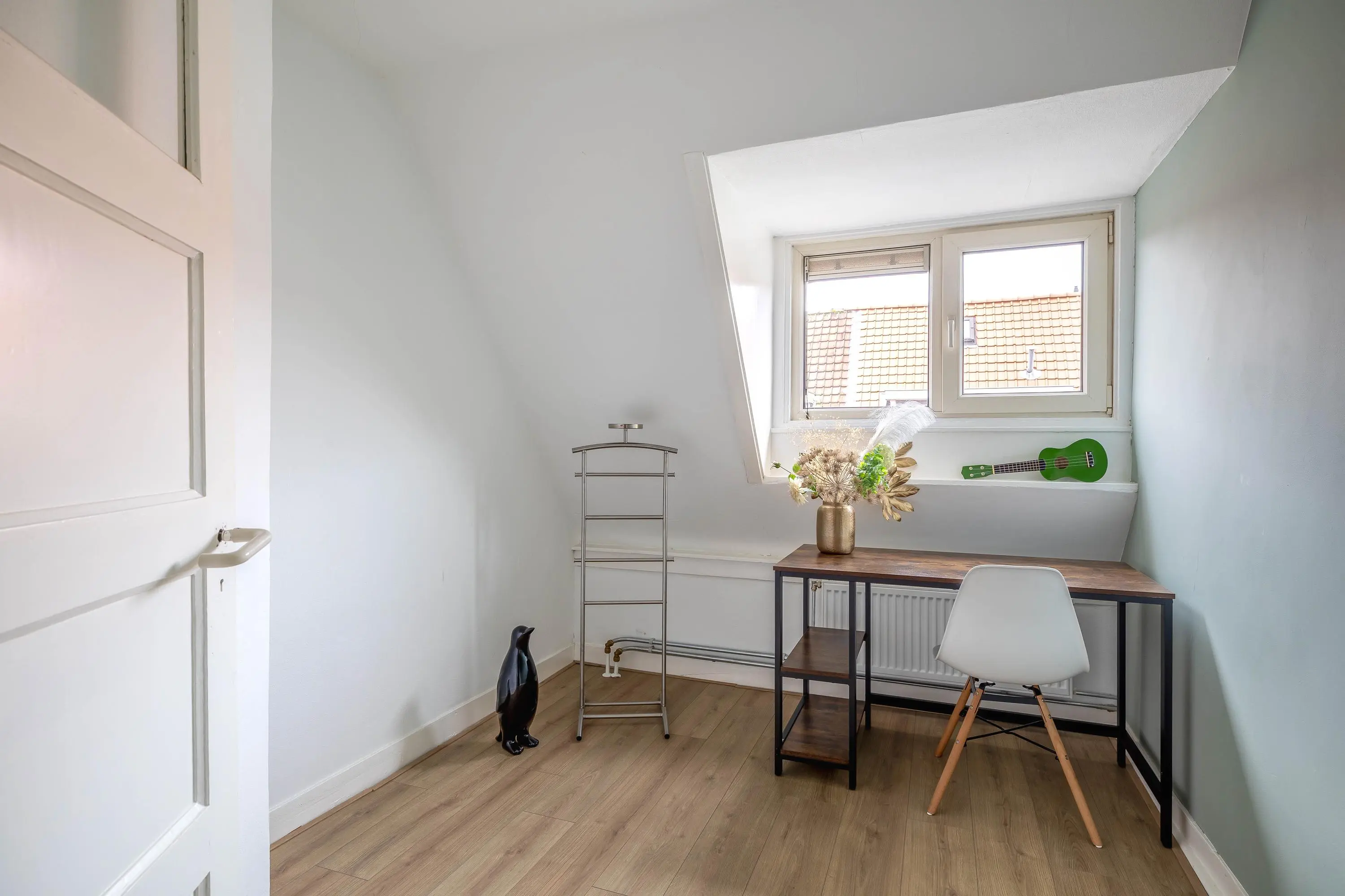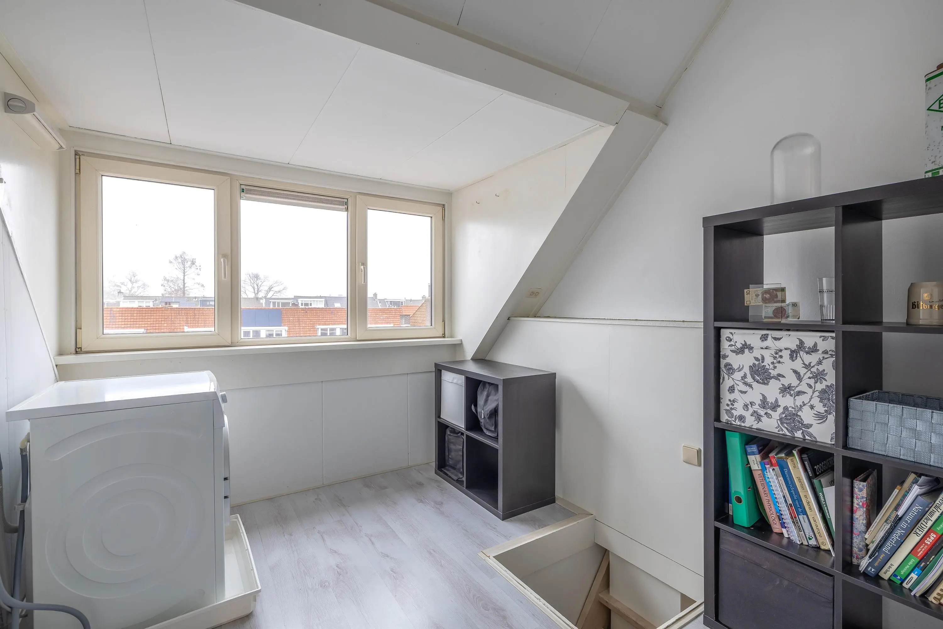 De opkomst op de tweede etage is op de overloop. Hier zijn aan de voorzijde 2 fijne slaapkamers te vinden. Beide met veel ruimte en mogelijkheden. Middels een vaste rechte trap is ook de derde etage te bereiken. Deze kamer is voorzien van opbergruimte en de wasmachine aansluiting. Echt een mooie toevoeging aan dit appartement.