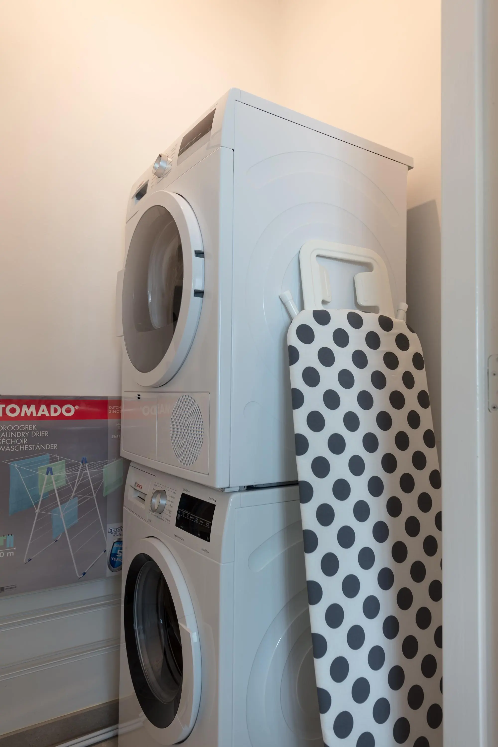 Op de begane grond geeft het portiek met het beltableau en de videofoon toegang tot het gesloten trappenhuis en de bergingen in kelder. De entree is gelegen op de eerste etage en geeft toegang tot het appartement via een lichte gang. Hier is een luxe toilet met wandcloset en fonteintje te vinden. Ook zijn er ruime inbouwkasten voor bijvoorbeeld garderobe en bergruimte. Tevens is er een aparte voorraadkast te vinden. En dan de royale en lichte woonkamer; voorzien van veel ruimte voor een gezellige zithoek en fijne eethoek en natuurlijk de open doorgang naar de woonkeuken. Hier vindt u ook de deur naar het dakterras. Het dakterras is zeer ruim en is de perfecte plek om te genieten van de avondzon. De keuken is uitgevoerd in een moderne hoekopstelling, welke is voorzien van een inbouw combi-oven, 5-pits gaskookplaat met een wokbrander, een vaatwasser, afzuigkap en een ingebouwde koel/vrieskast. Het werkblad is van mooi composiet gemaakt en het apparatuur is van het welbekende merk Bosch. De perfecte keuken voor iedere (t)huis kok. Verder is er een studeerkamer/c.q. slaapkamer aan de voorzijde met een inbouw vaste kastenwand. De ruime master bedroom heeft veel lichtinval en geeft via de deur ook toegang tot het balkon aan de voorzijde. Deze kamer heeft een ingebouwde kastenwand en achter het bed een wand met aan 2 zijden een walk-in-closet. Verder is er een wasruimte met de witgoedaansluitingen en een luxe badkamer aanwezig. Deze heeft als sanitaire voorzieningen een dubbele wastafel met ingebouwde kranen en een meubel, designradiator en een ruime inloopdouche met regendouche, handdouche en ingebouwde thermostatische mengkraan. De meterkast heeft 9 groepen en 3 aardlekschakelaars en een volledig afgemonteerde patchkast en een glasvezelaansluiting voor de distributie van Internet en Wifi. Wat een compleet en praktisch appartement!
