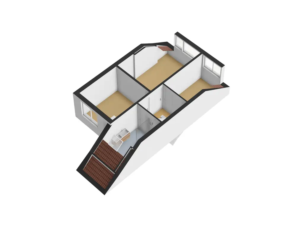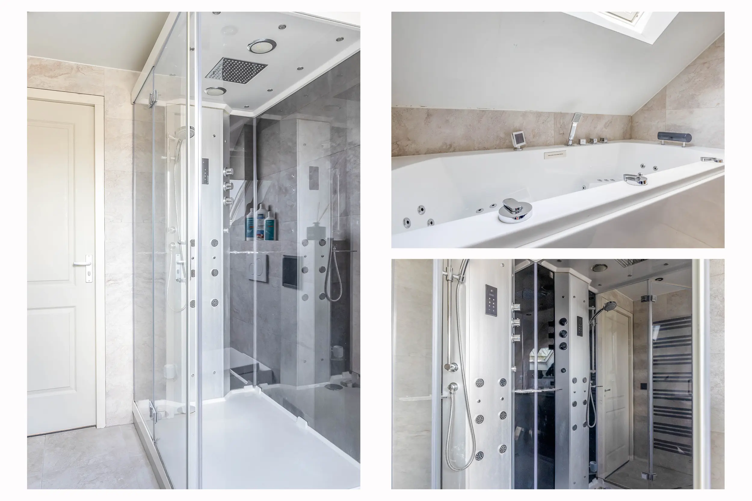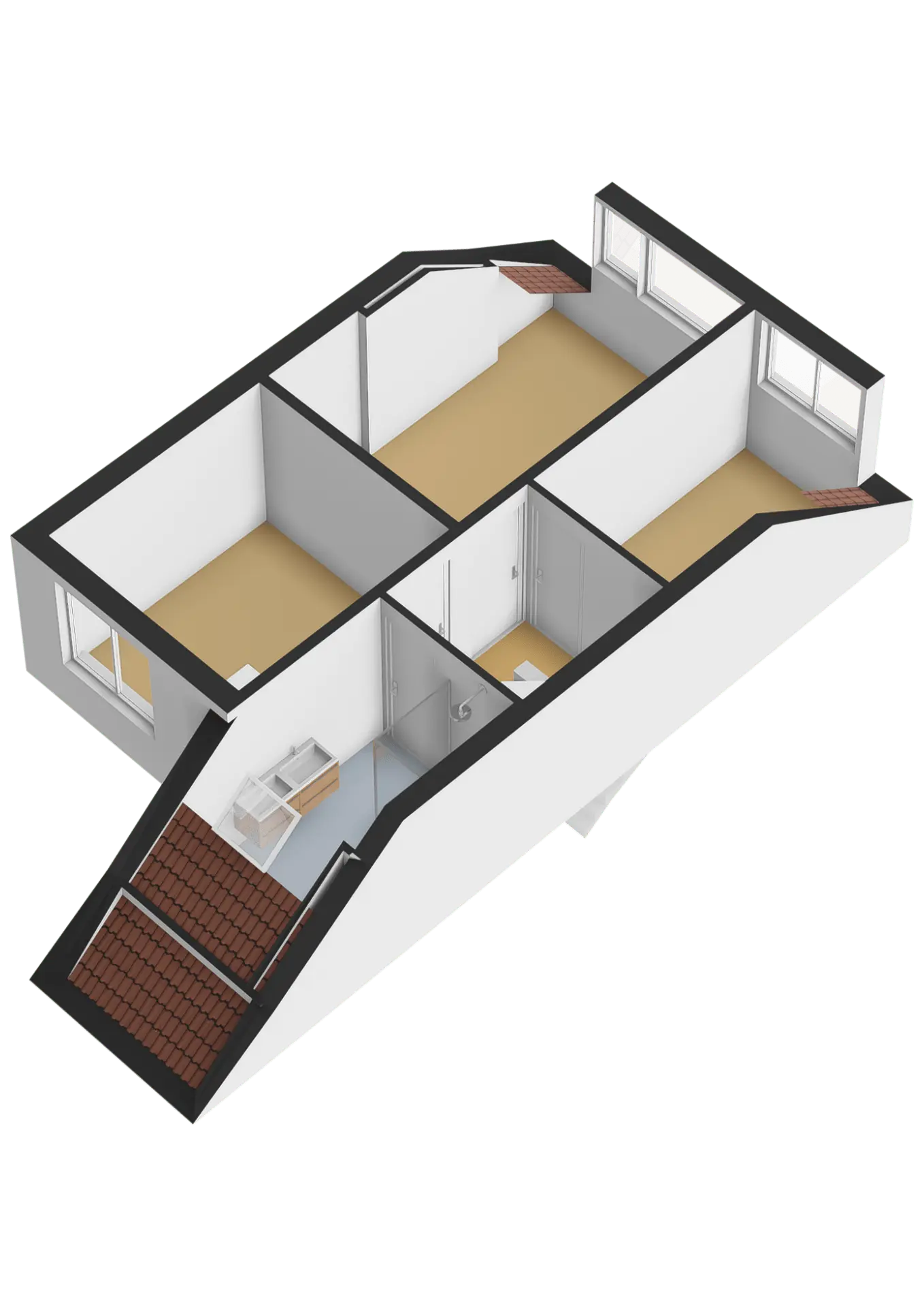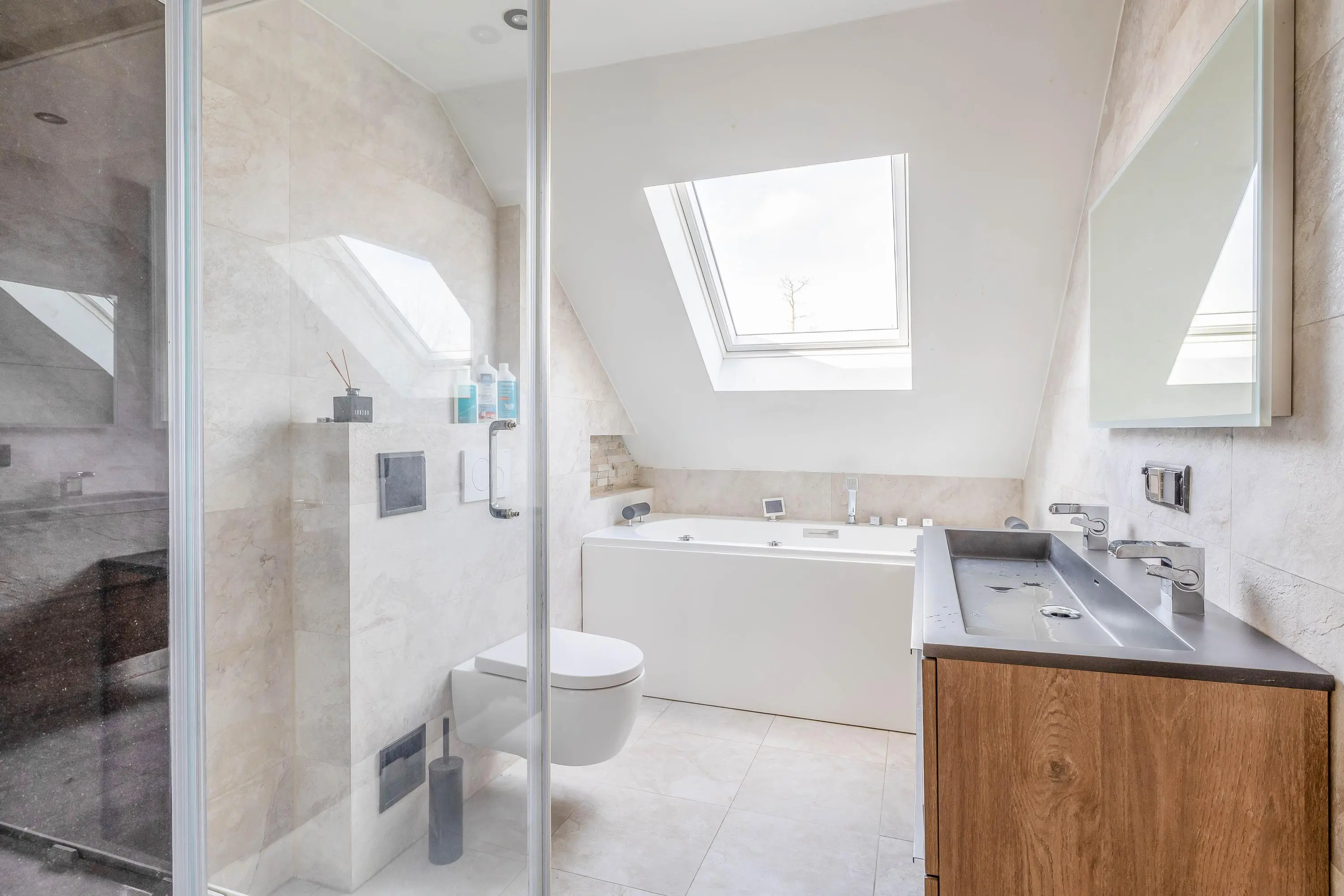 De opkomst op de eerste etage is op de overloop. Aan de voorzijde is de badkamer uit 2021 gelegen. Deze is modern en voorzien van een ruime douche, wastafel met meubel en dubbele kraan, groot ligbad met bubbel functie, een extra wandcloset en een designradiator. Verder zijn er 3 grote slaapkamers aanwezig met veel natuurlijk daglicht. De tweede etage is voorzien van een grote slaapkamer met 2 grote dakkapellen. Deze ruimtes zijn voorzien van strak stucwerk en zijn verder naar eigen wens af te werken. Op de overloop is de C.V.-ketel aanwezig.
