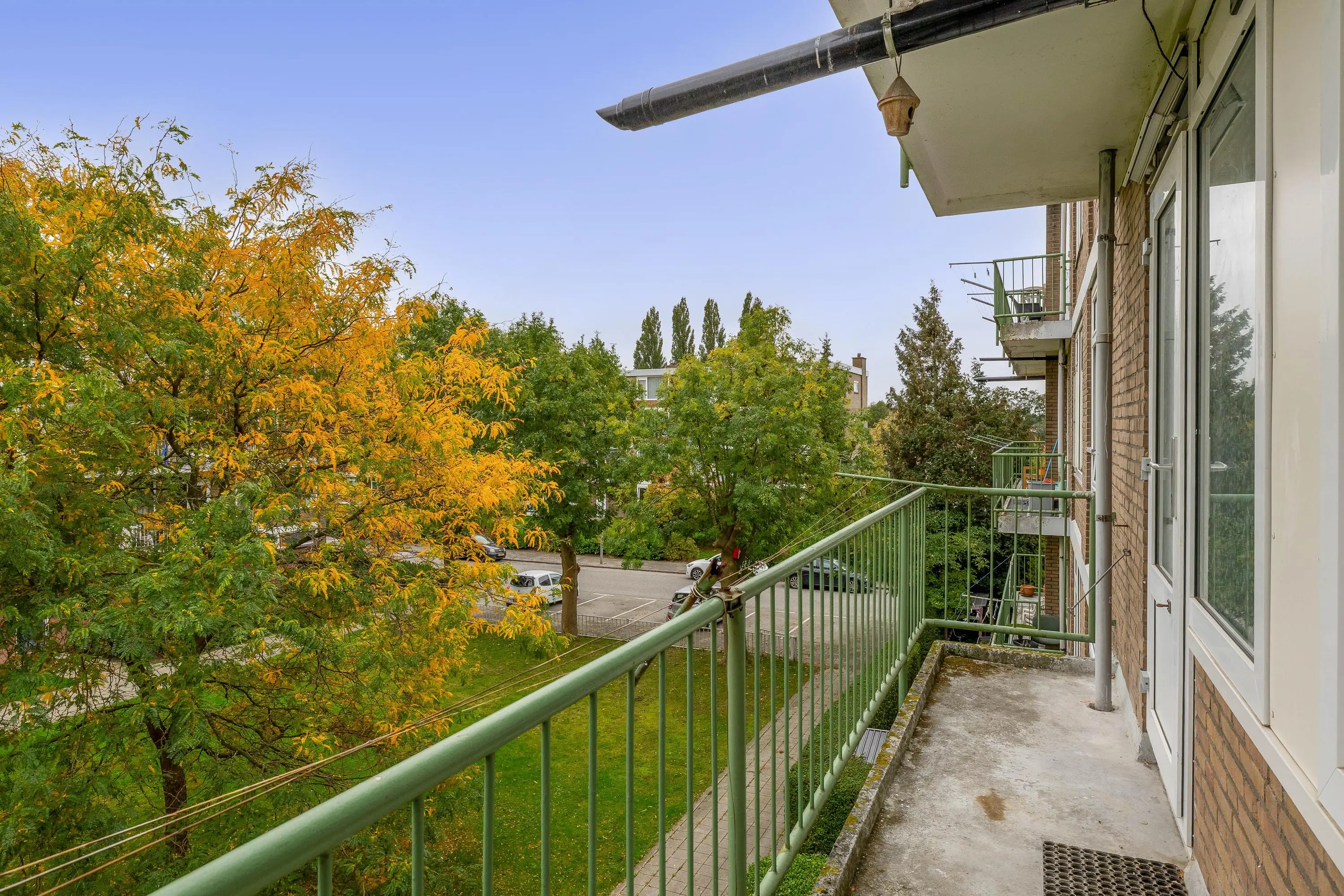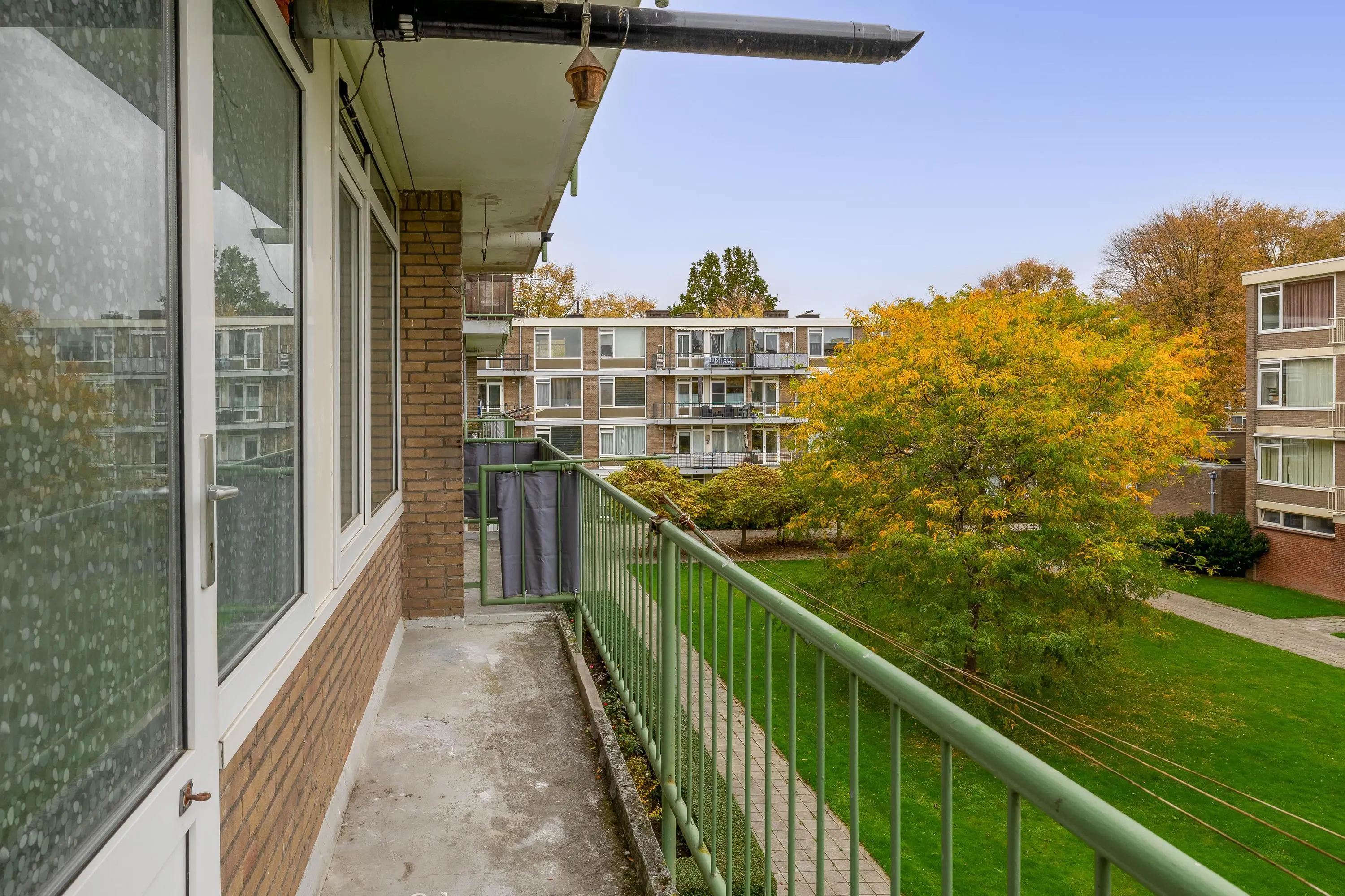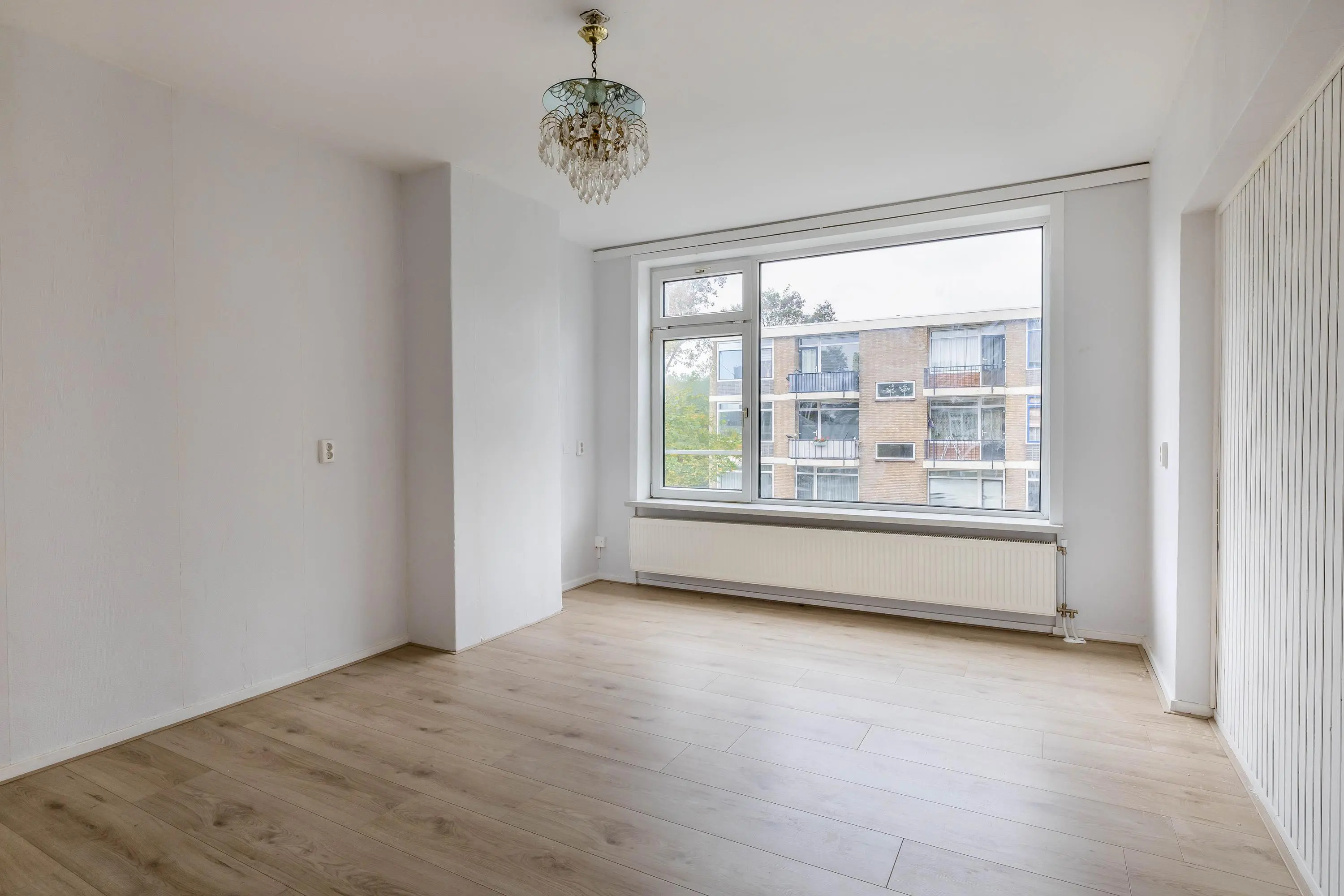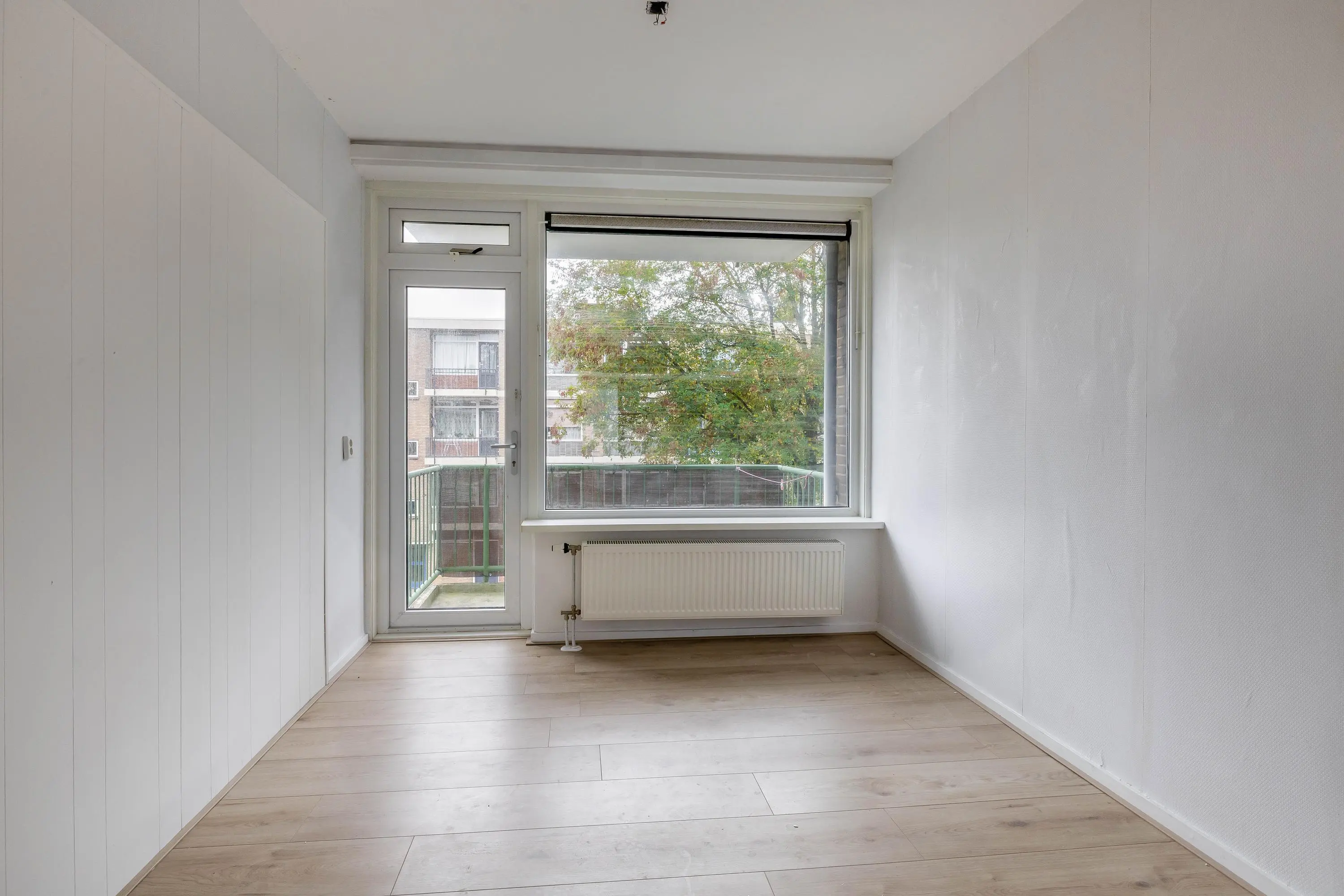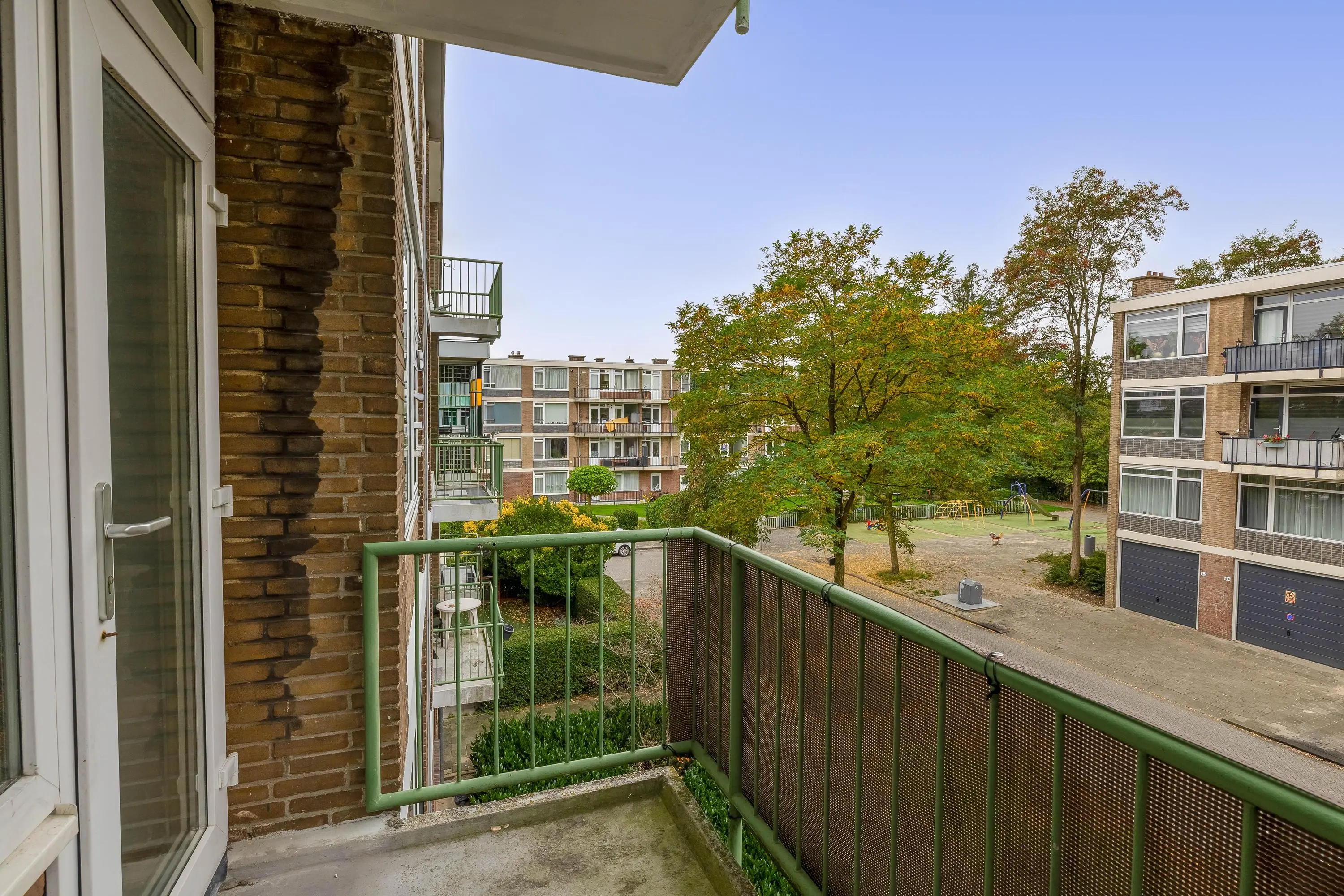 Op de begane grond is een gesloten portiek met de intercom, brievenbussen, trappenhuis en toegang tot de bergingen. Via de trap is de 2e verdieping te bereiken. De entree in de woning is in de hal. De meterkast bevindt zich naast de voordeur. Dan volgt in het appartement de CV-ruimte. De toiletruimte is voorzien van witte tegels op de wanden en een grijs betegelde vloer. Er is een staand toilet met een fonteintje. Verder is er ook een ruime slaapkamer aan de achterzijde met veel lichtinval. De slaapkamer aan de voorzijde is voorzien van de doorgang naar het balkon aan de voorzijde. De woonkamer is net als deze slaapkamer ook aan de voorzijde gelegen. Een fijne living met genoeg mogelijkheden voor een eethoek en gezellige zithoek. De slaapkamer aan de achterzijde geeft toegang tot de keurige badkamer met wit betegelde wanden en een grijs betegelde vloer. Deze is verder voorzien van een douchegedeelte met glazen vouwwand en een wastafel met meubel en spiegelkast. Ook is er in de badkamer een doorgang naar de keuken. De keuken bevindt zich aan de achterzijde en heeft een 3-bloks keukenblok met bovenkastjes. Verder is hier ook de deur naar het balkon aan de achterzijde. De woning is voorzien van een keurige laminaatvloer op de betonnen vloeren en glasvezelbehang op de wanden. Wat een fijne plek om te wonen!