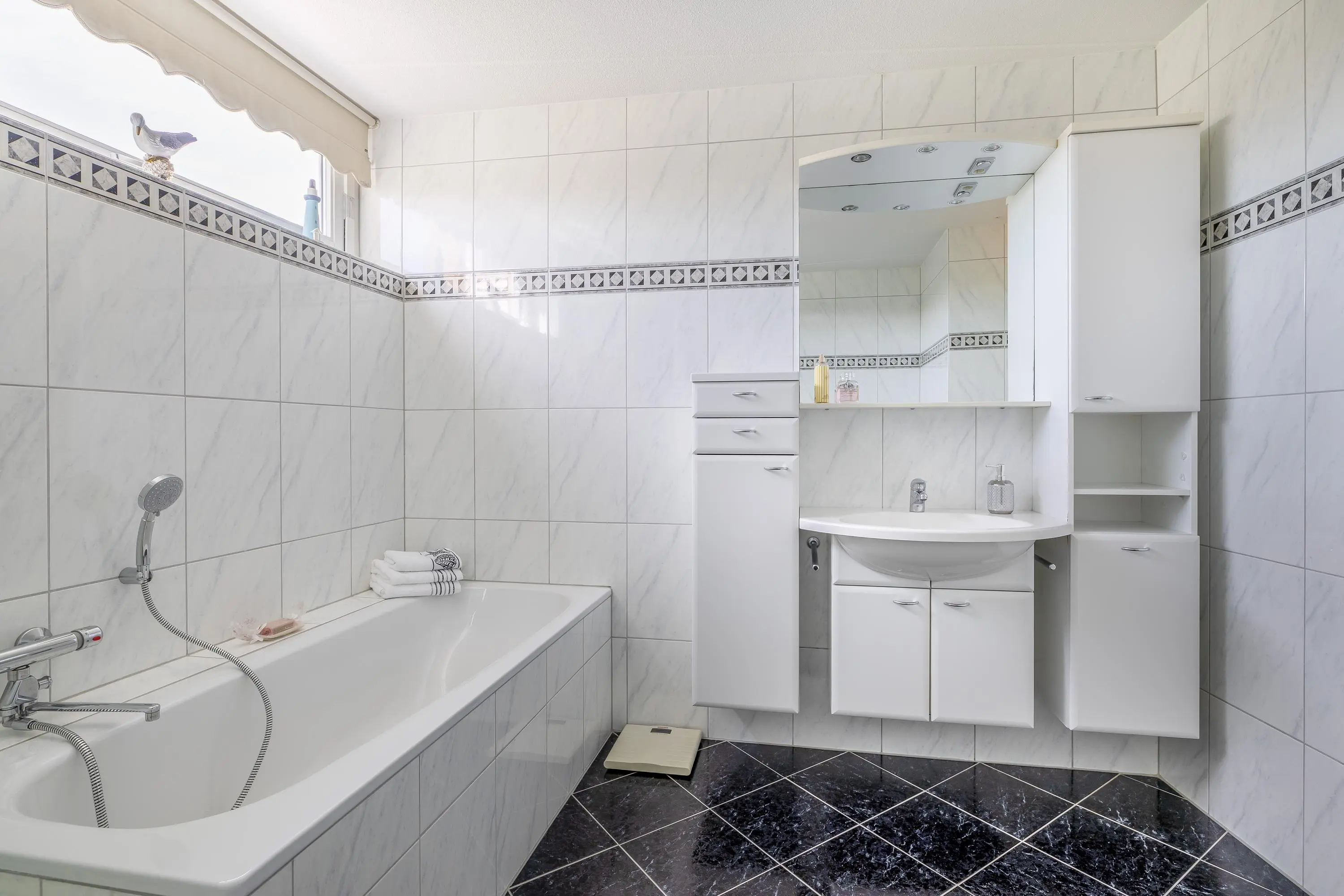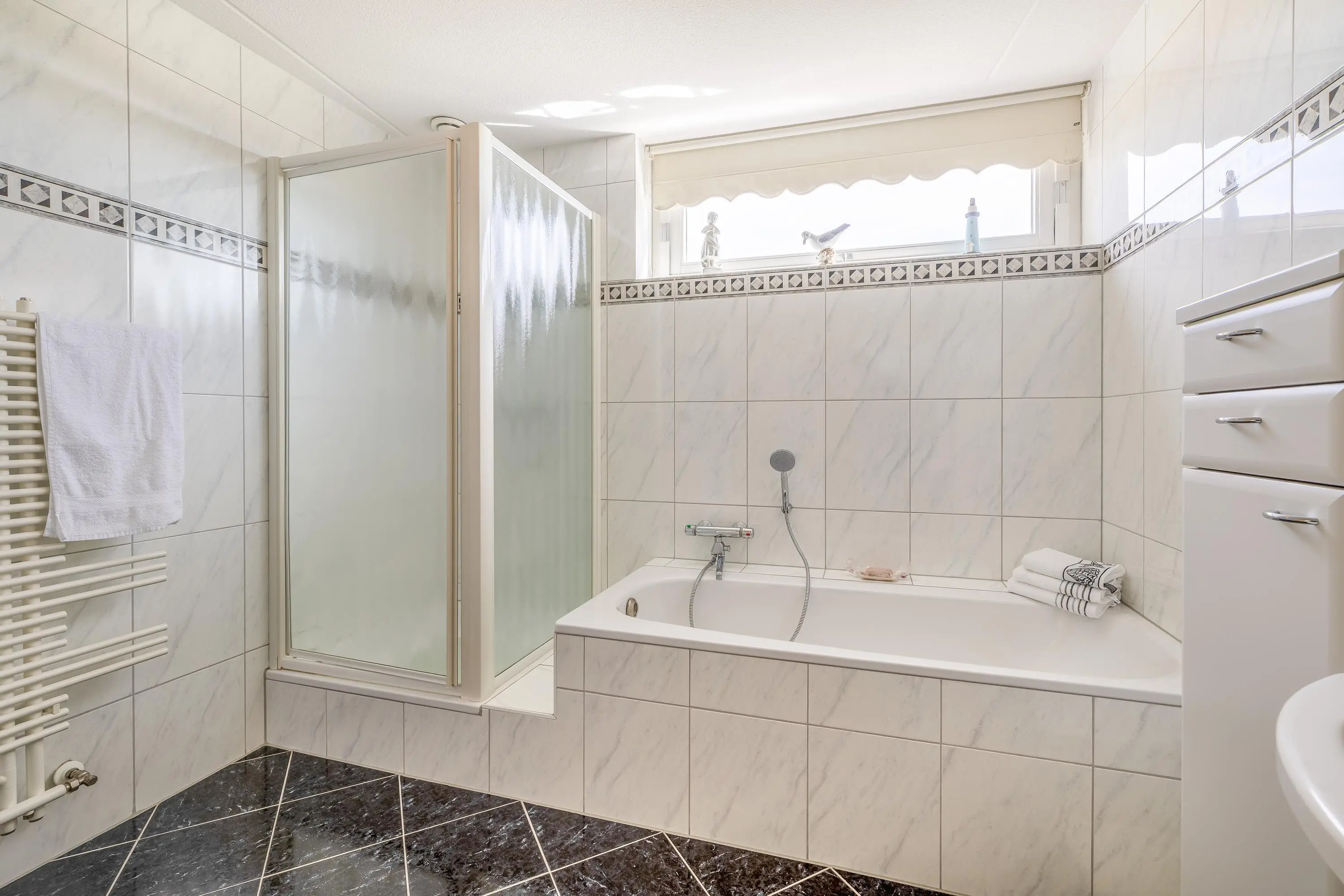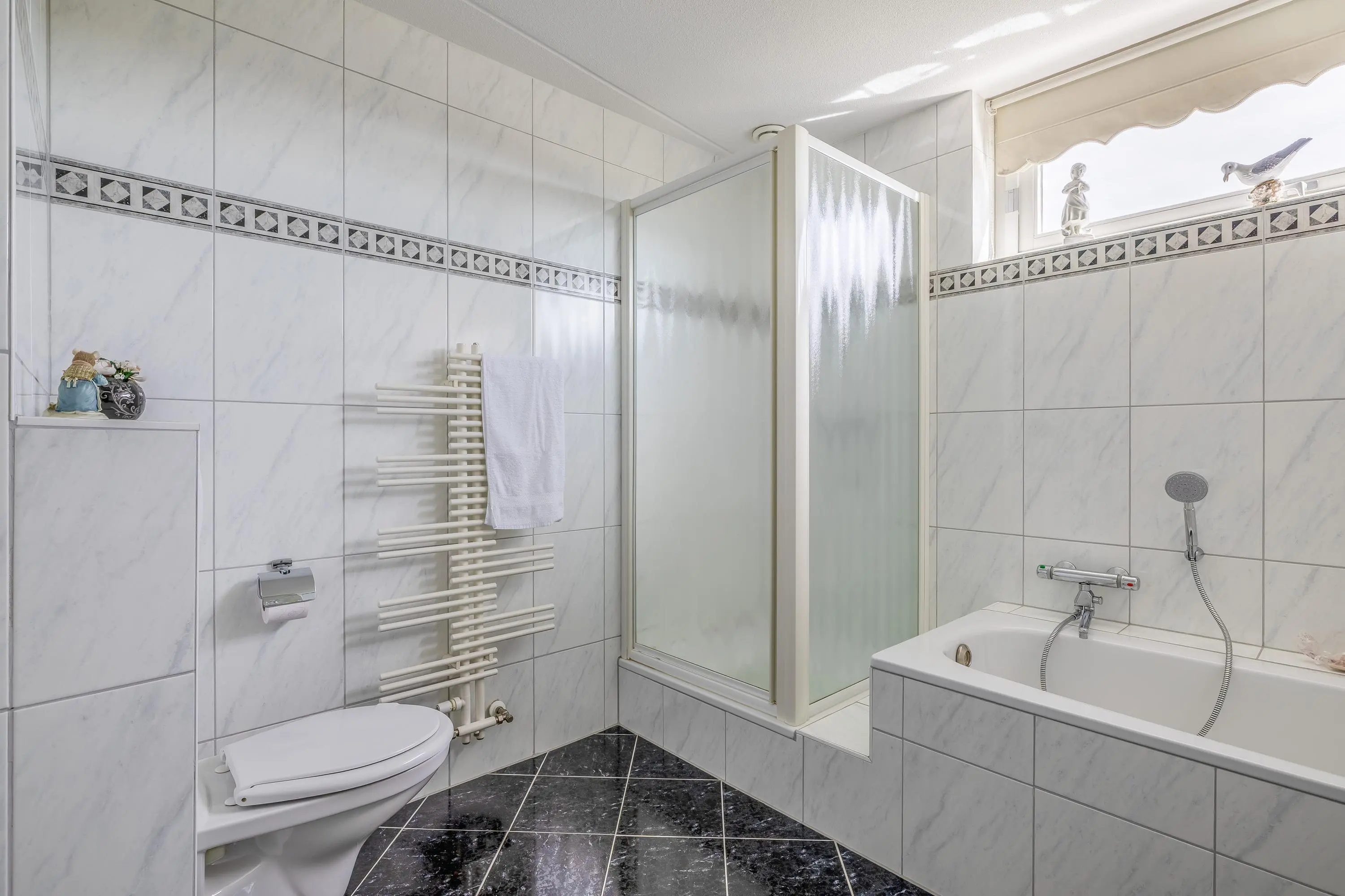 De badkamer, eveneens uit circa 2000, is compleet uitgevoerd.