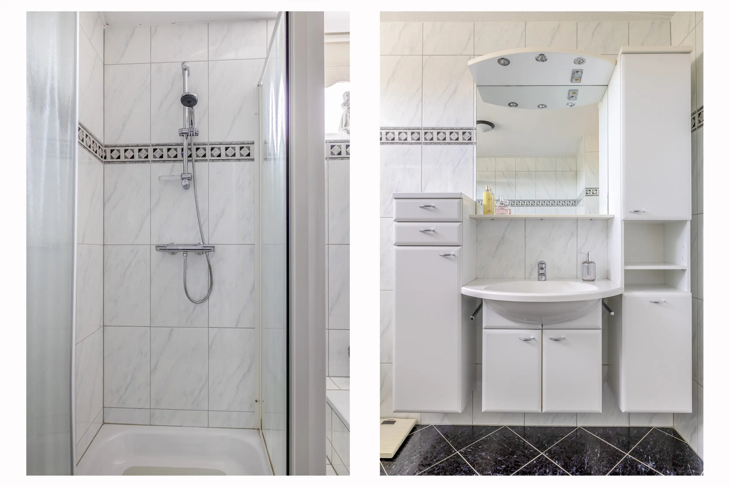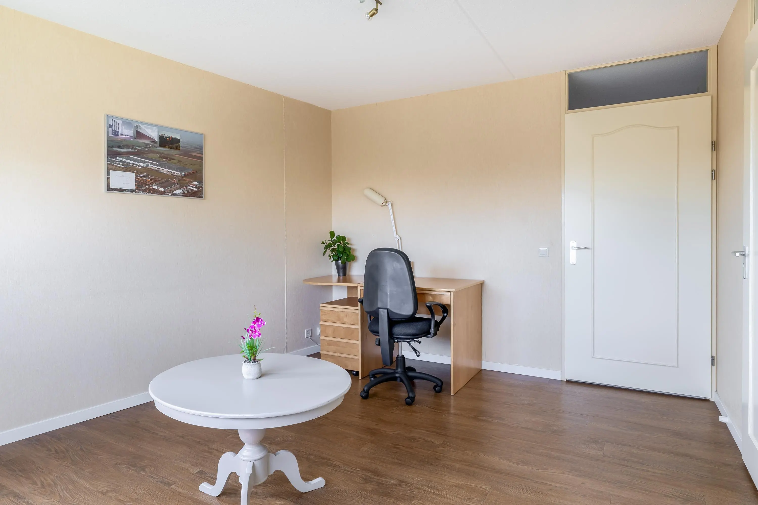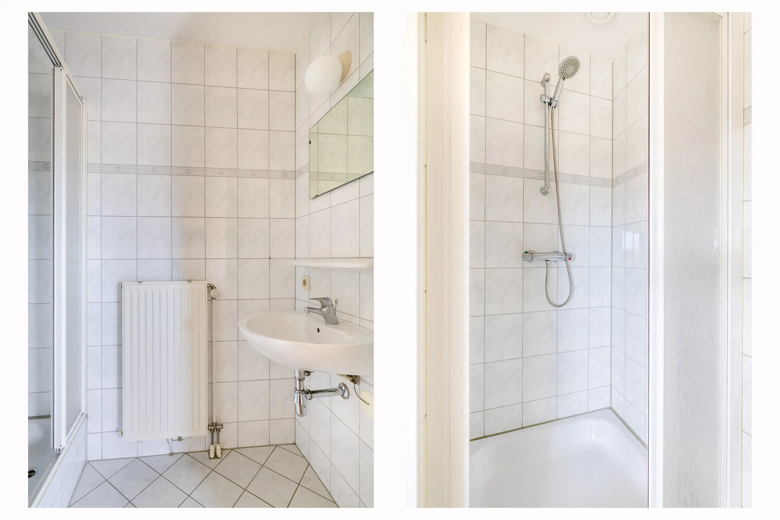 De tweede slaapkamer (ca. 14 m²) is eveneens ruim en beschikt over een eigen douche, wastafel en een praktische vaste kast – ideaal als gastenverblijf of werk-/logeerkamer.