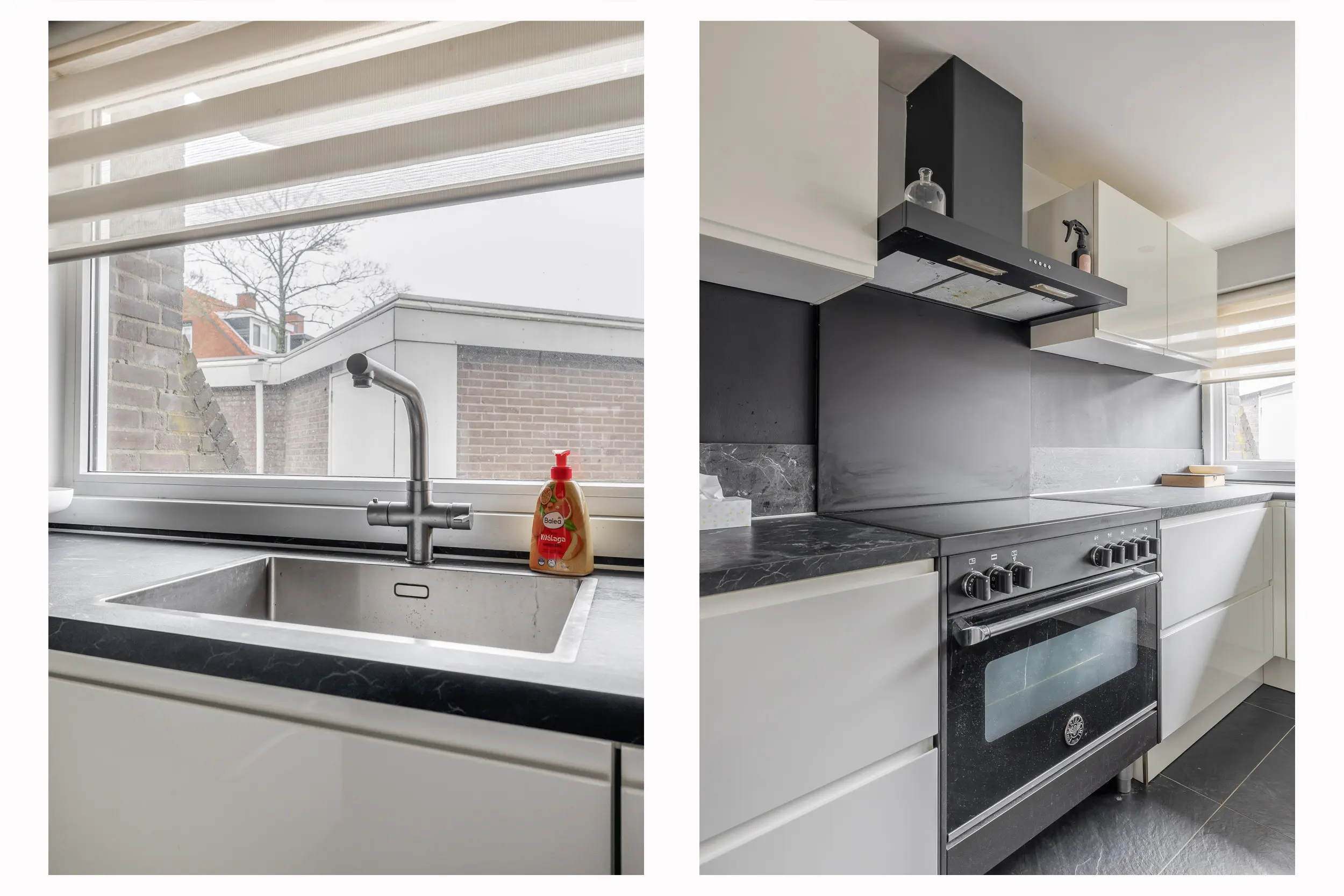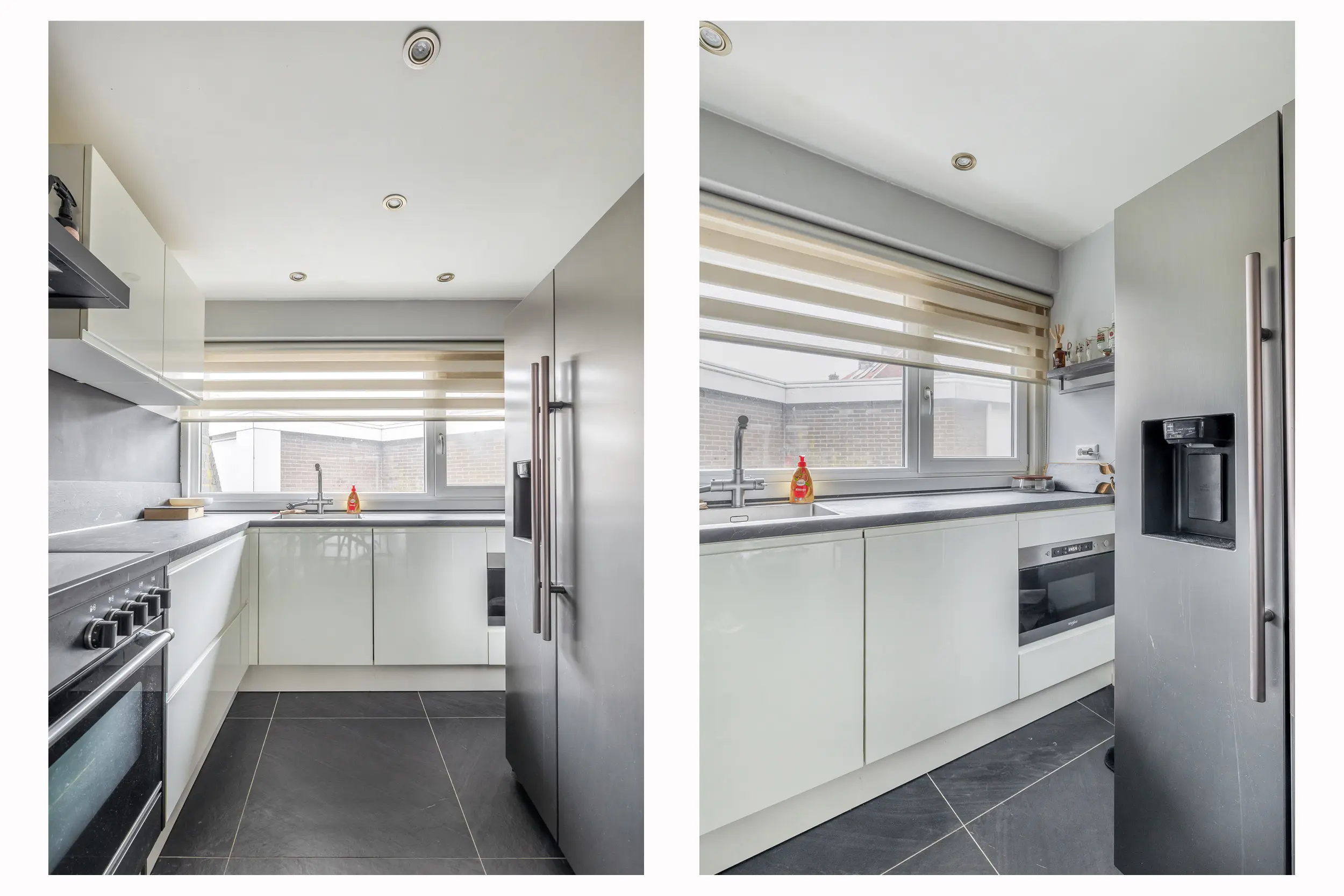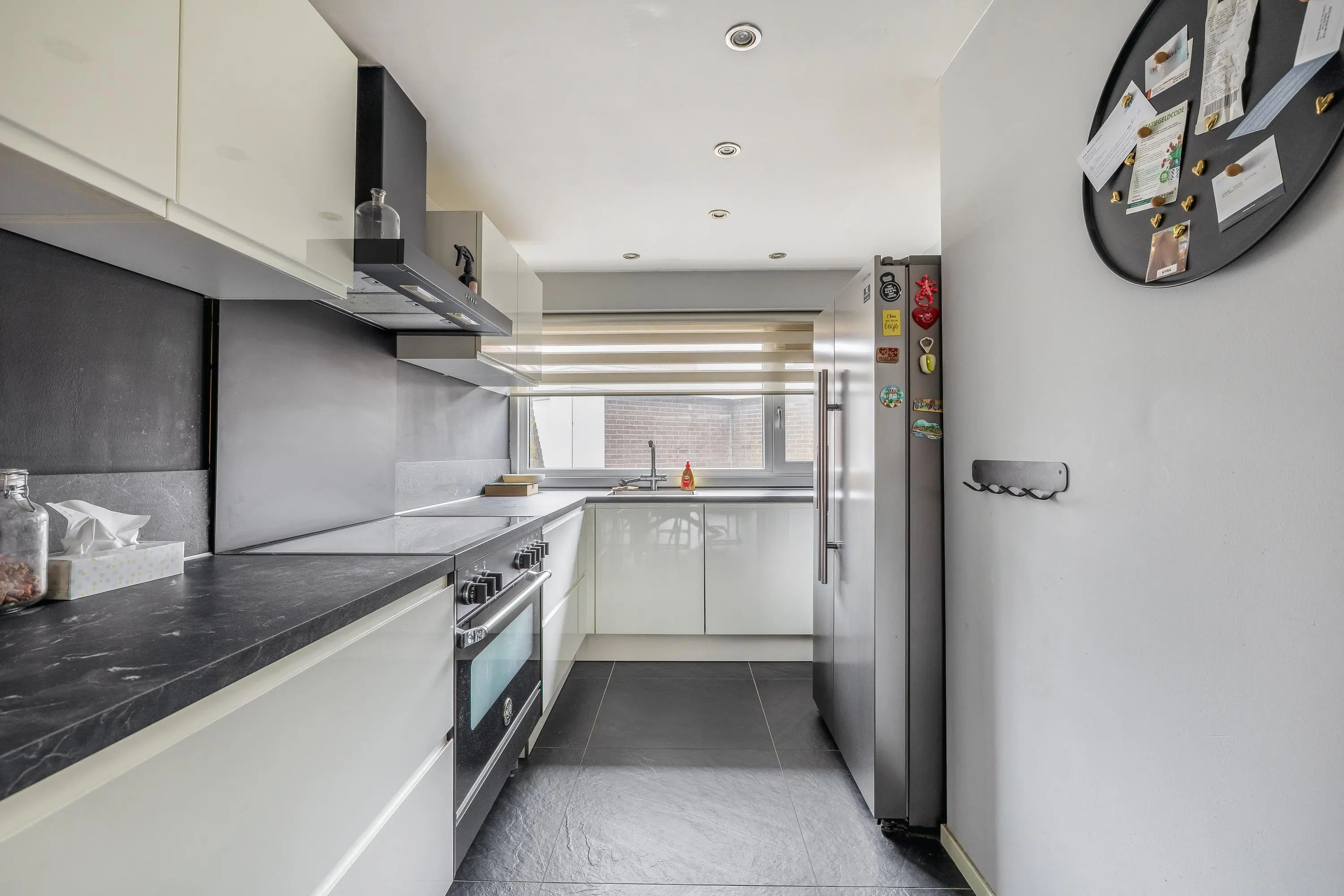 De open keuken is uitgevoerd in een prettige L-opstelling en voorzien van ingebouwde plafondspots. De moderne keuken is uitgerust met een inductiekookplaat, afzuigkap, magnetron, kokend waterkraan en een vaatwasmachine (2025).