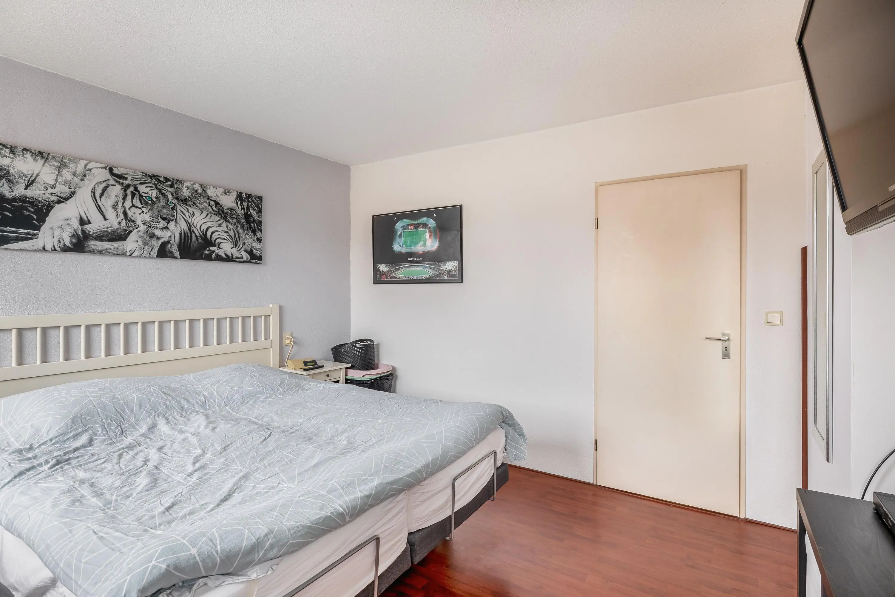 De royale hoofdslaapkamer is gelegen aan de voorzijde van de woning en heeft een oppervlakte van circa 20m². Deze kamer beschikt over een praktische tussenwand, waarachter een walk-in closet is gerealiseerd. De tweede en derde slaapkamer bevinden zich aan de achterzijde van de woning en meten respectievelijk circa 11m² en 8,5m². Alle slaapkamers zijn voorzien van dezelfde laminaatvloer.