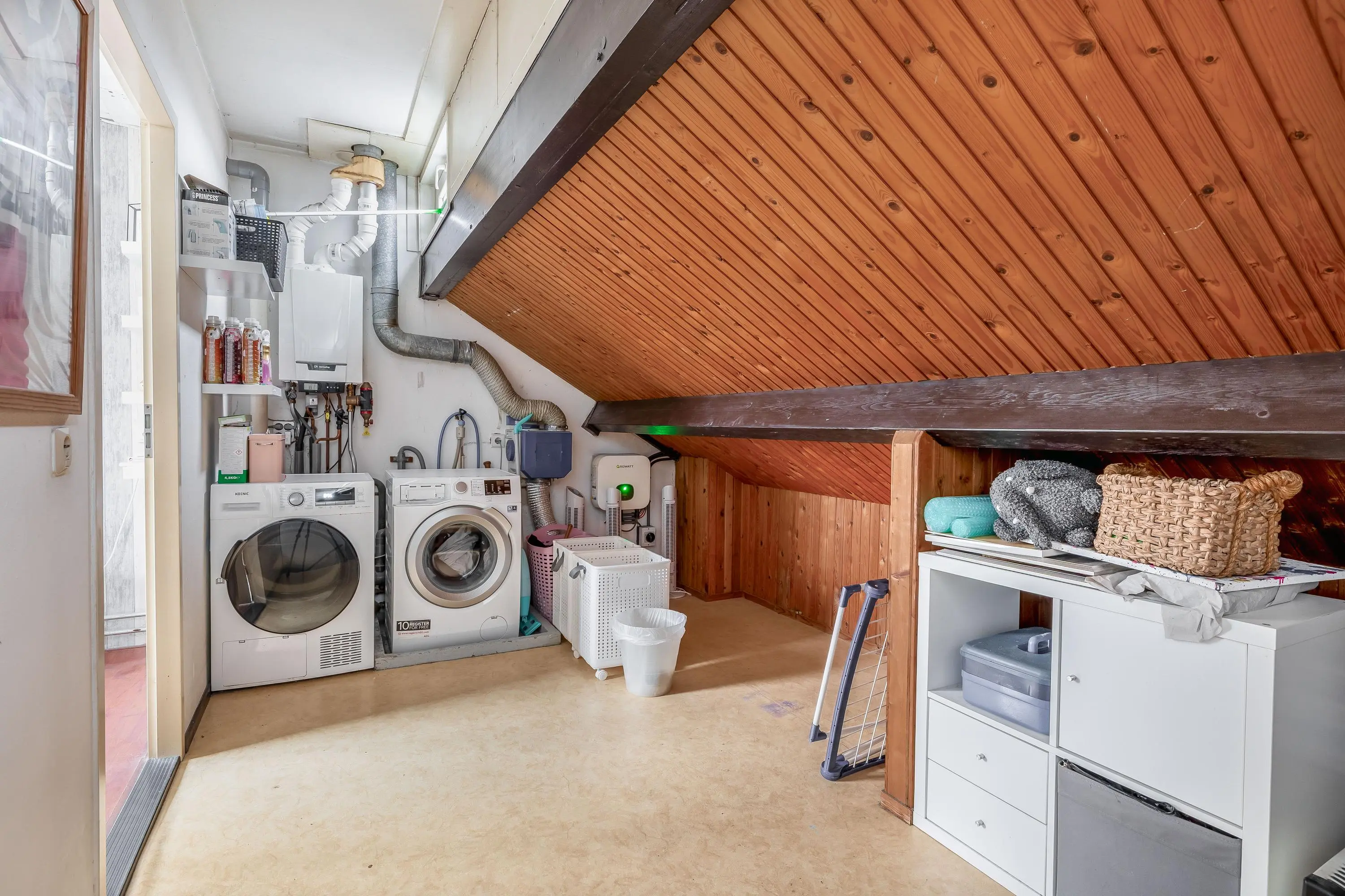 De tweede verdieping is vergroot door de plaatsing van een dakkapel. Op de overloop bevinden zich de cv-opstelling en de aansluitingen voor wasmachine en droger. Vanaf de overloop is er toegang tot de vierde slaapkamer.