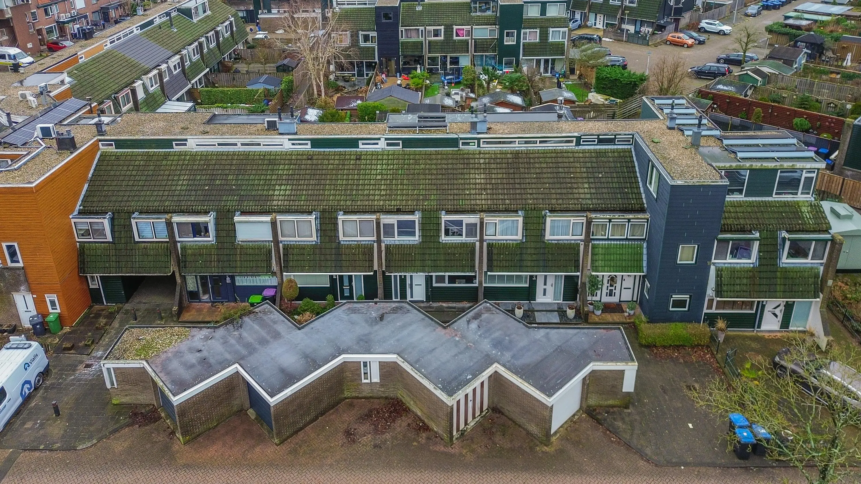 De bijbehorende garage van circa 16,5m², gelegen aan de voorzijde van de woning, biedt ruimte om een auto te stallen en is daarnaast ideaal als praktische opslag voor fietsen, tuinspullen of gereedschap.