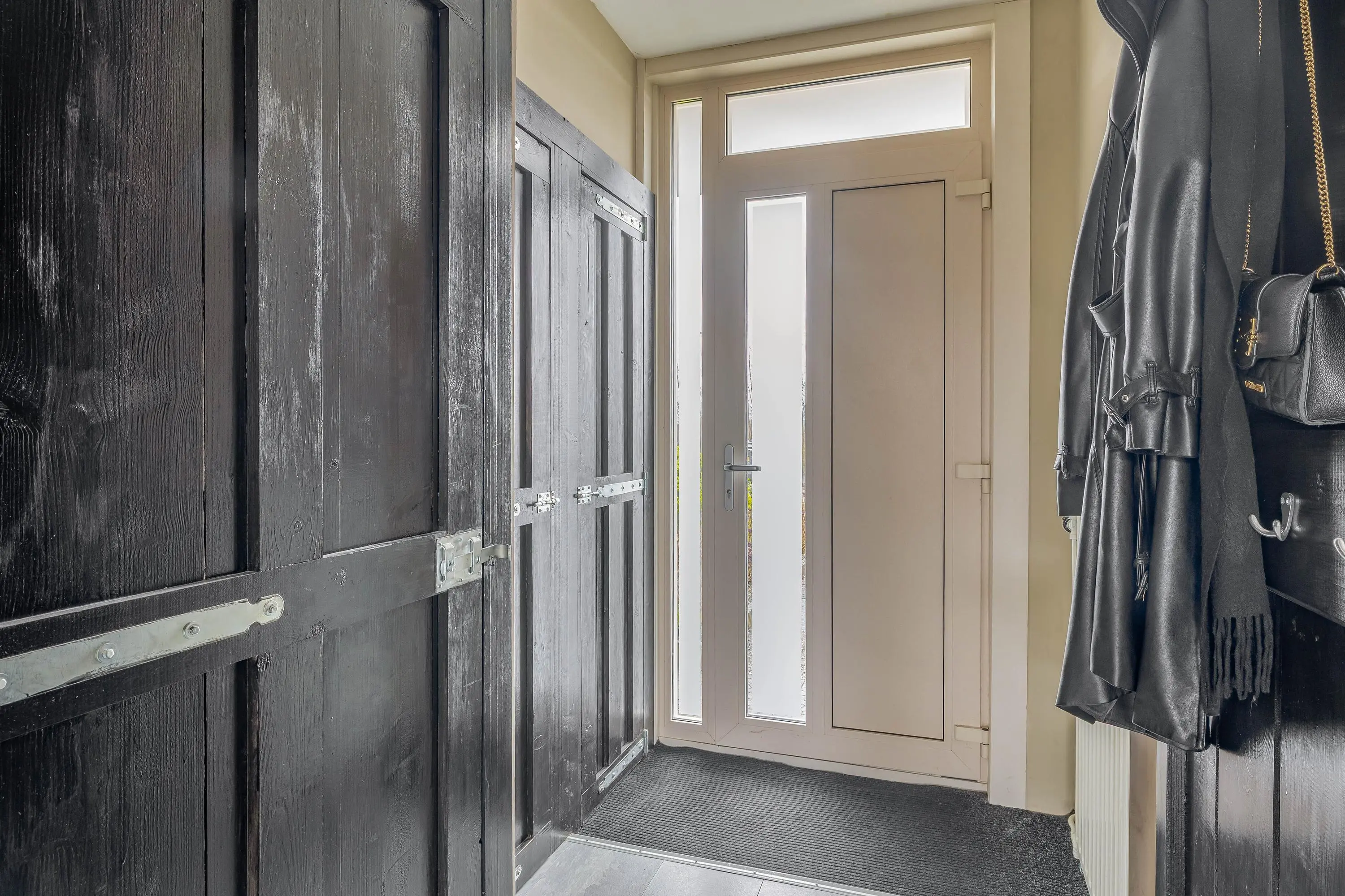 Bij binnenkomst betreedt u de hal, die is voorzien van een nette laminaatvloer welke doorloopt over de gehele begane grond. In de hal bevinden zich de meterkast, een praktische opbergkast en een separaat toilet.