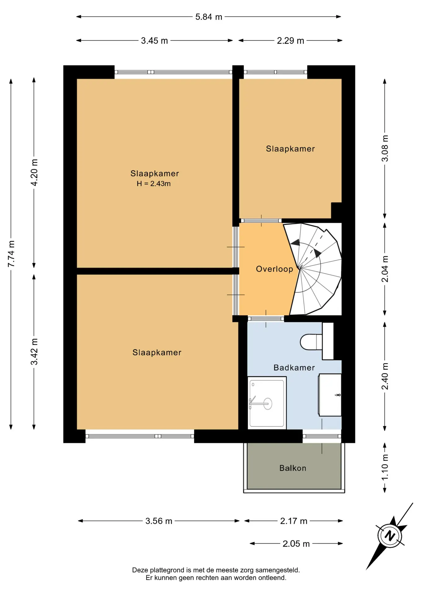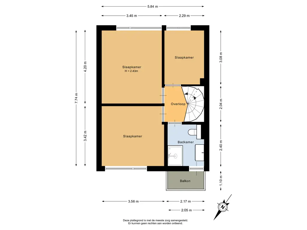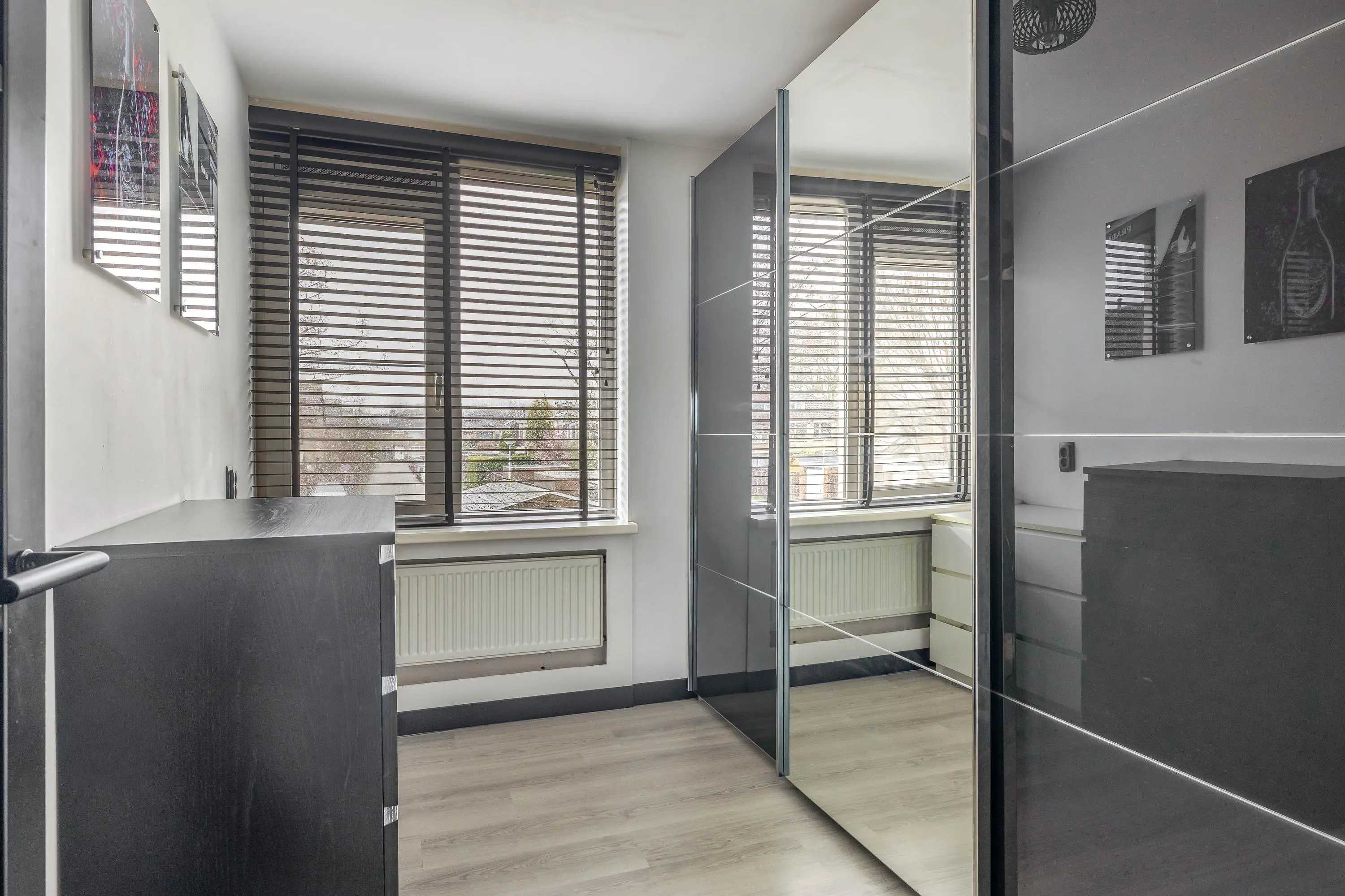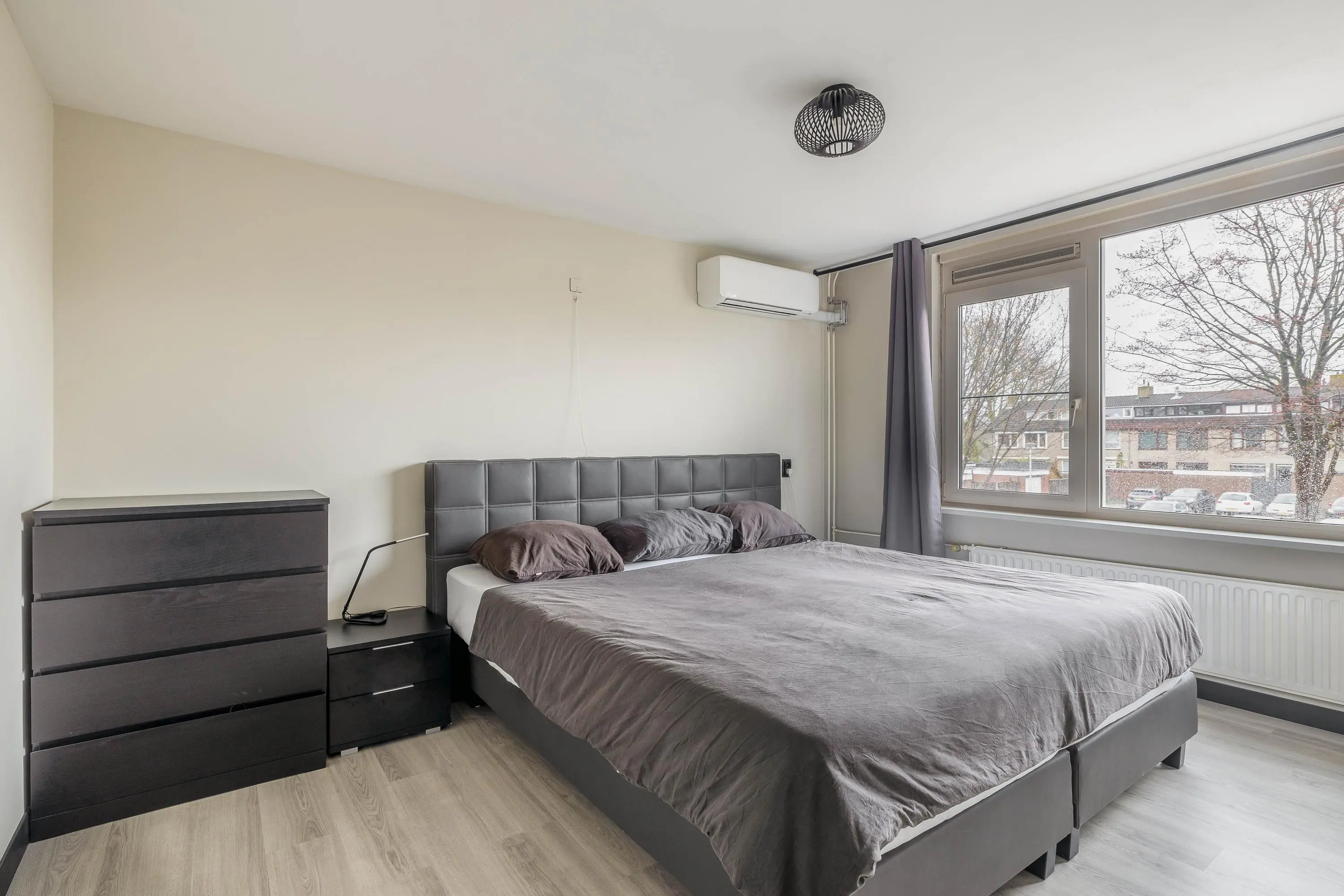 De hoofdslaapkamer is gelegen aan de achterzijde van de woning en heeft een oppervlakte van circa 14,5m². Deze kamer is voorzien van airconditioning voor een aangenaam binnenklimaat en een rolluik voor extra verduistering en privacy. De tweede slaapkamer bevindt zich aan de voorzijde en meet circa 12m². De derde slaapkamer, van circa 7m², ligt eveneens aan de achterzijde.
