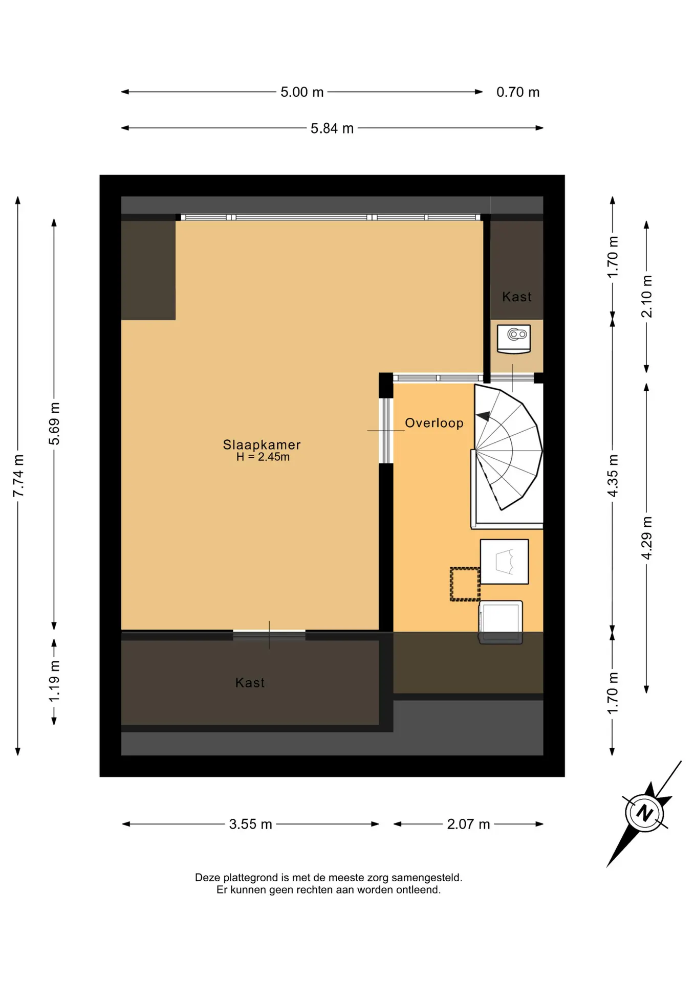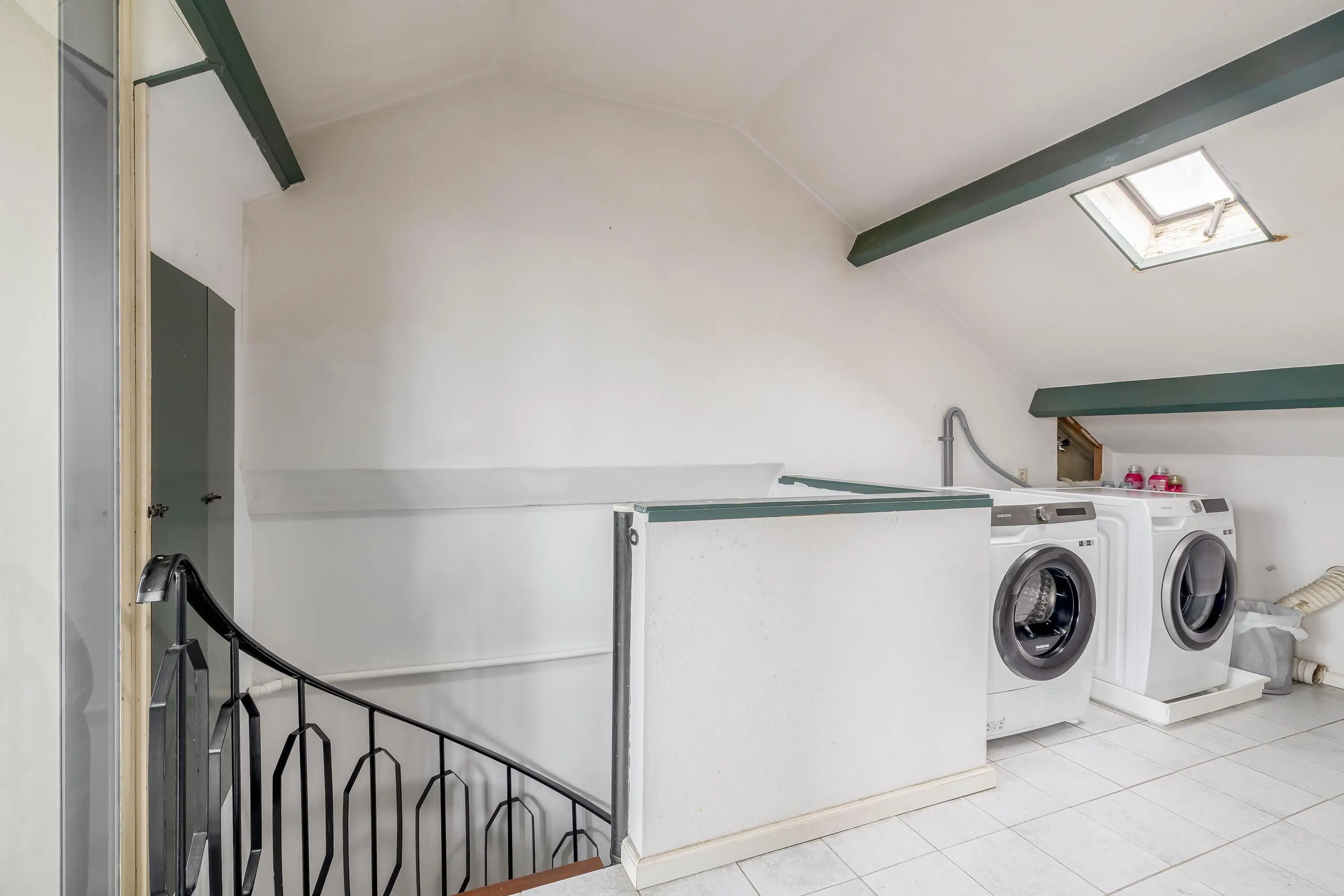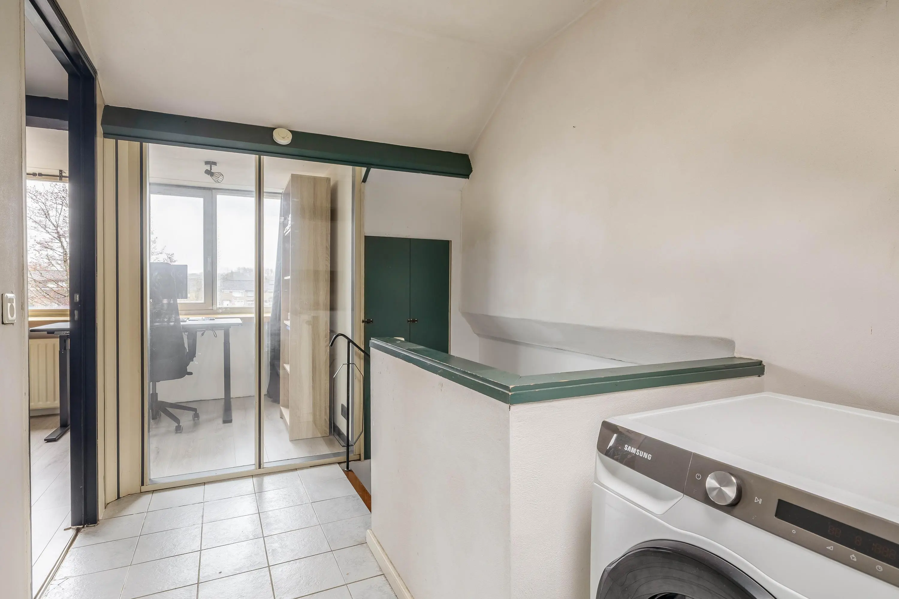 Op de overloop bevinden zich de Cv-opstelling en de aansluitingen voor de wasmachine en droger. Vanaf hier is de slaapkamer bereikbaar.