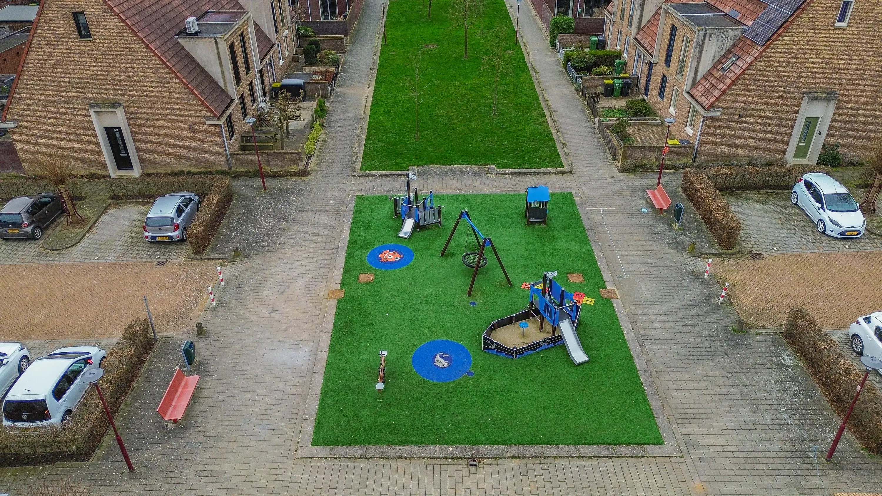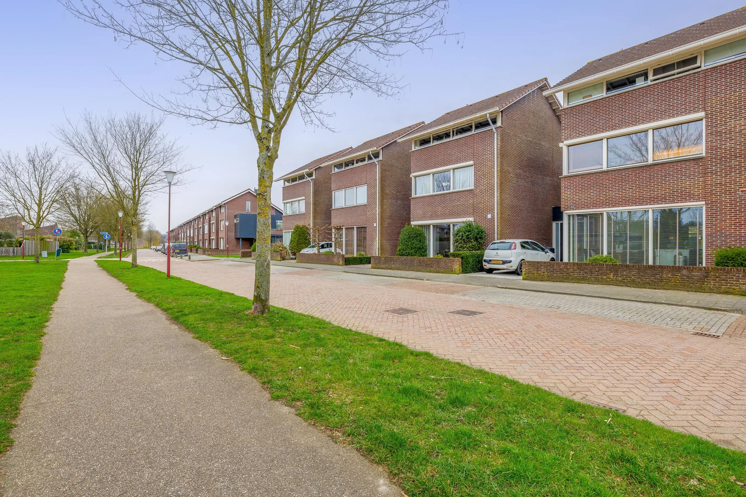 De voortuin is voorzien van een oprit met laadpaal.