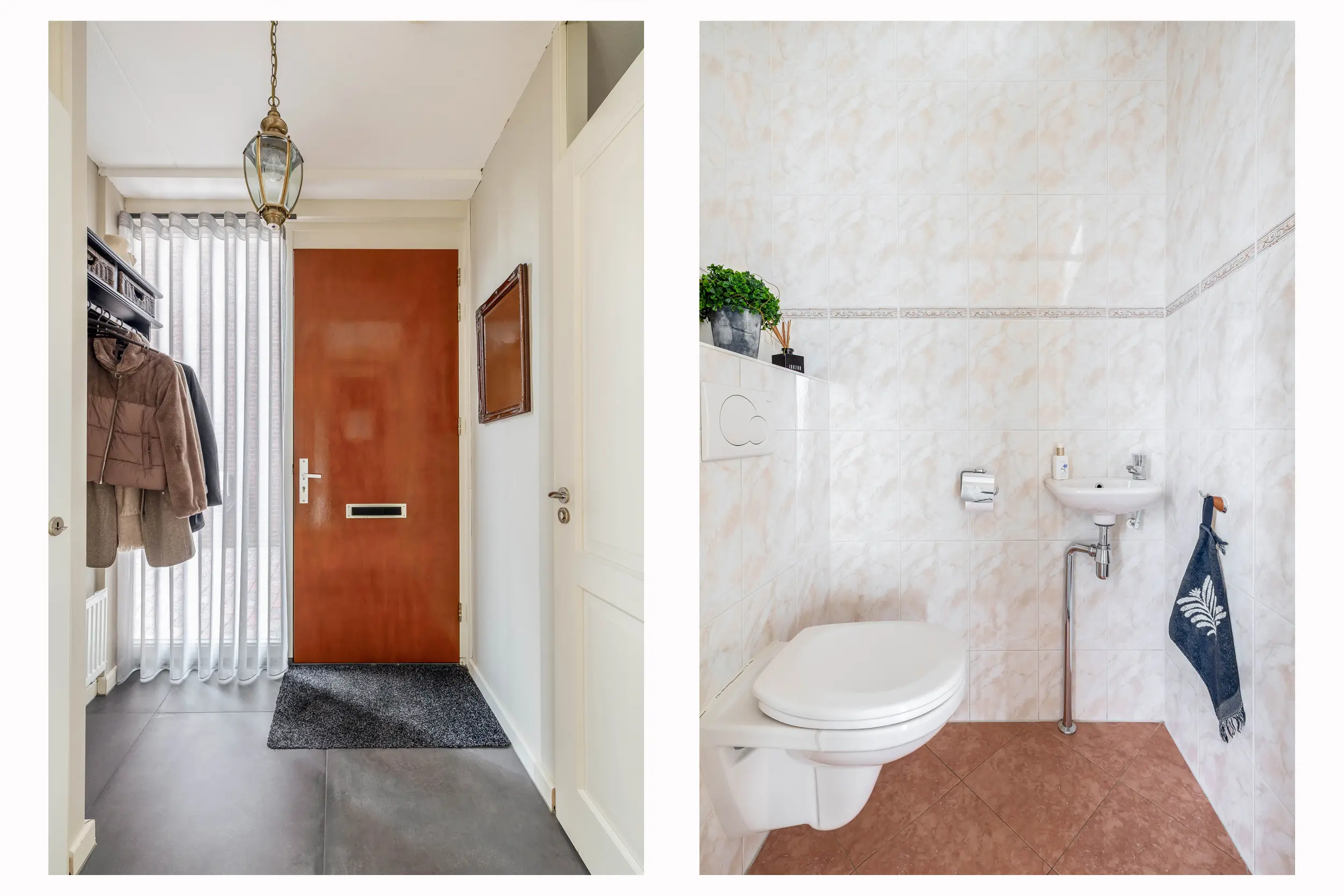 Entree/hal met meterkast en een toilet met fonteintje.