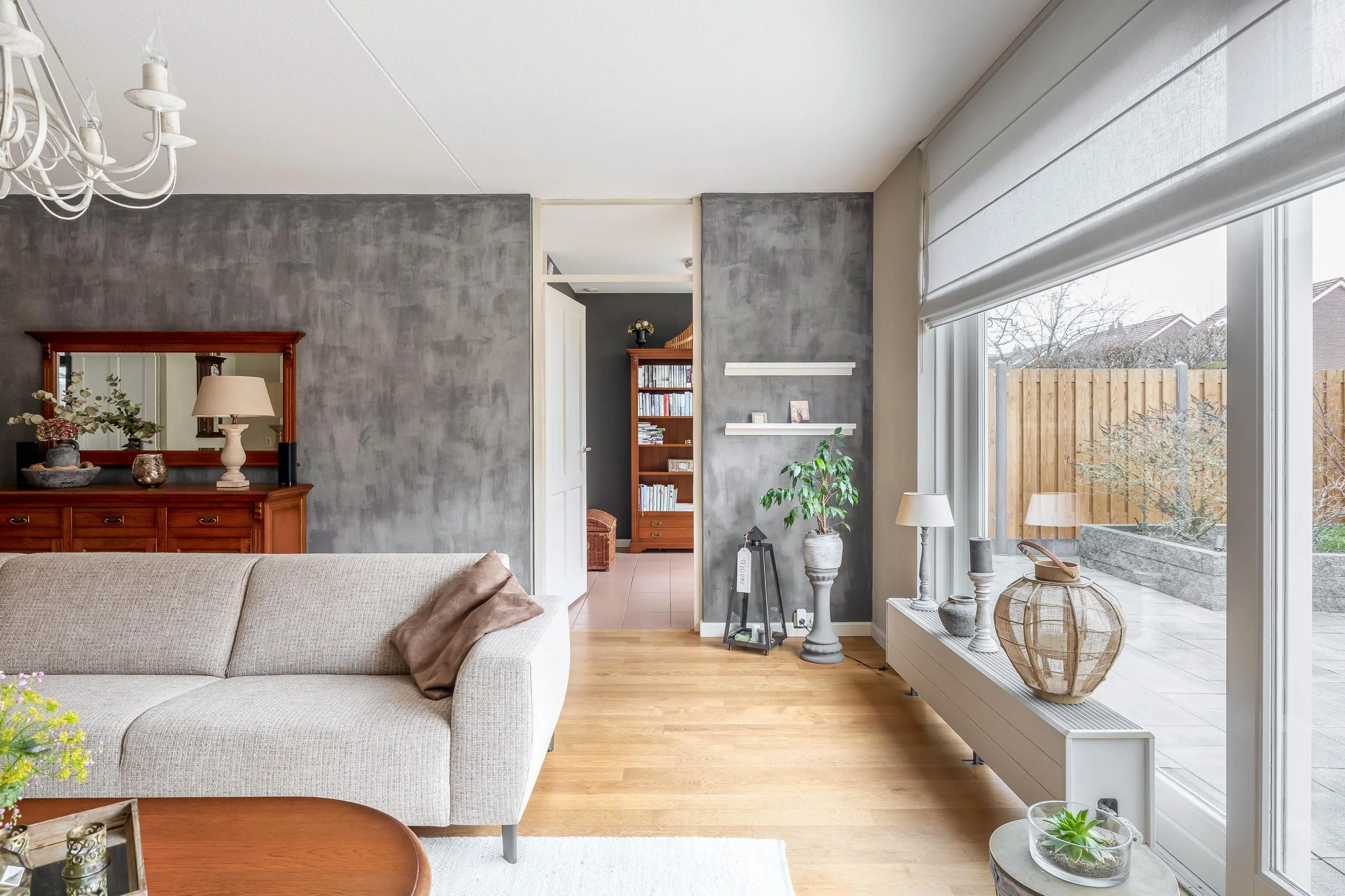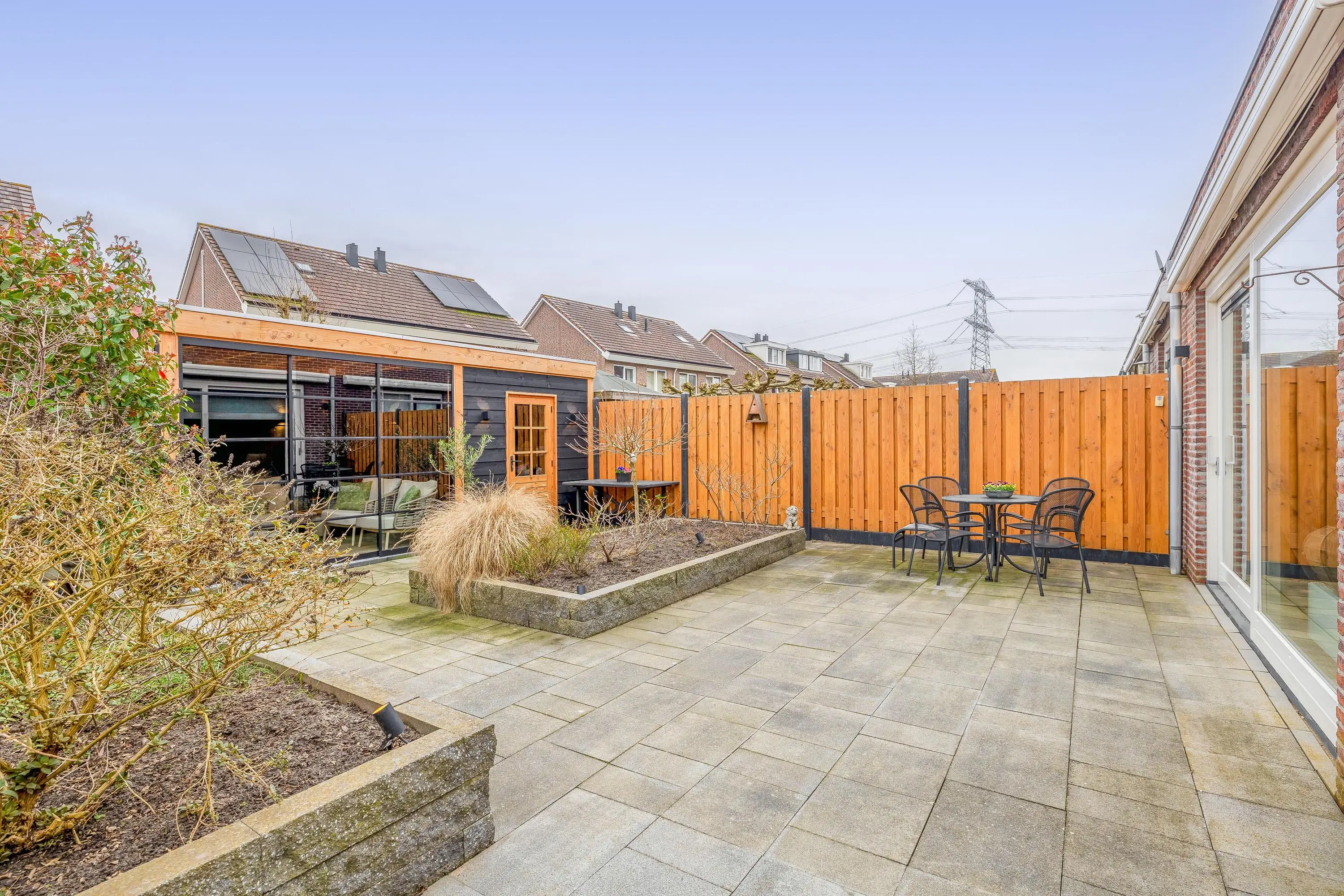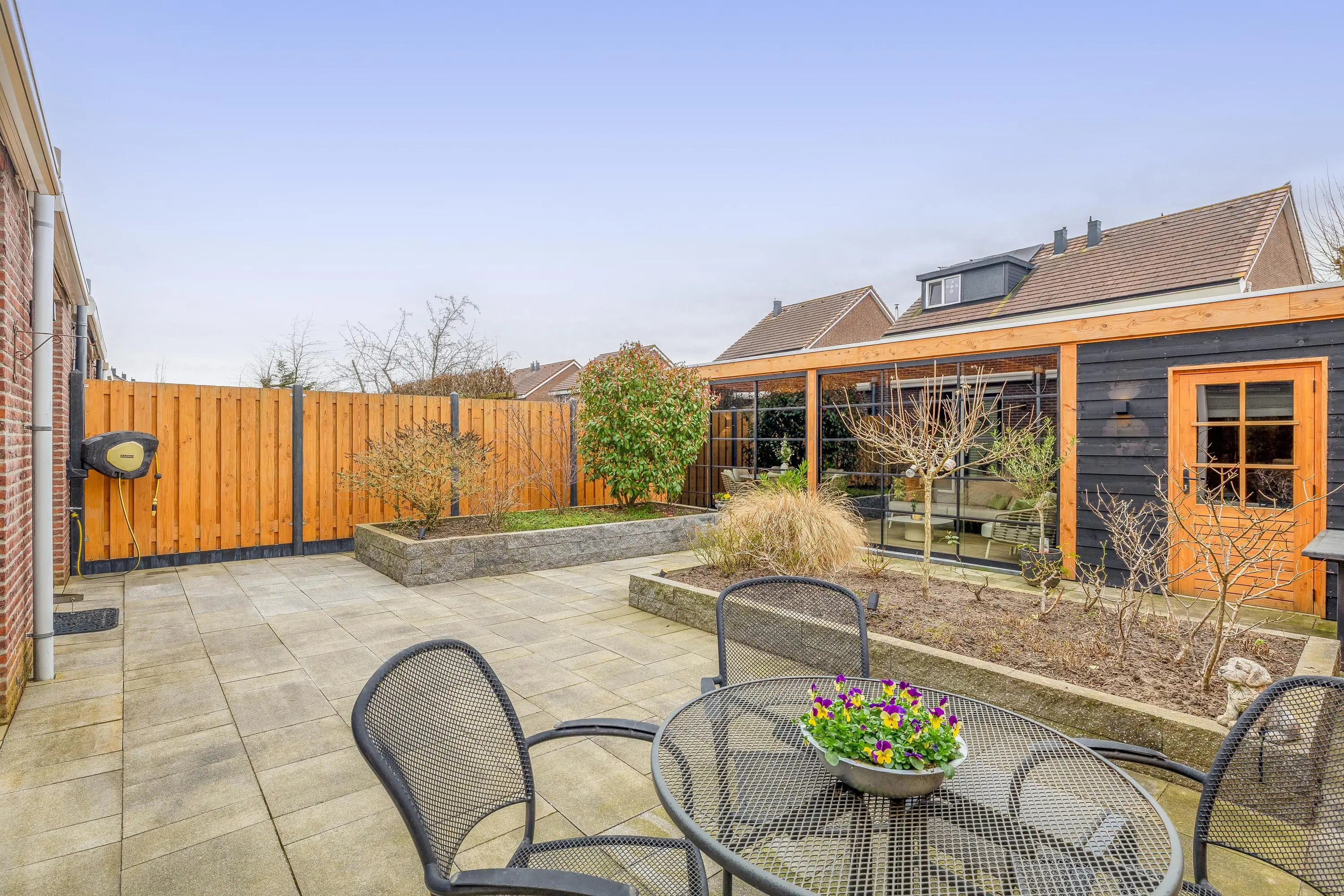 De woning is aan de achterzijde voorzien van elektrische zonwering en een buitenkraan.