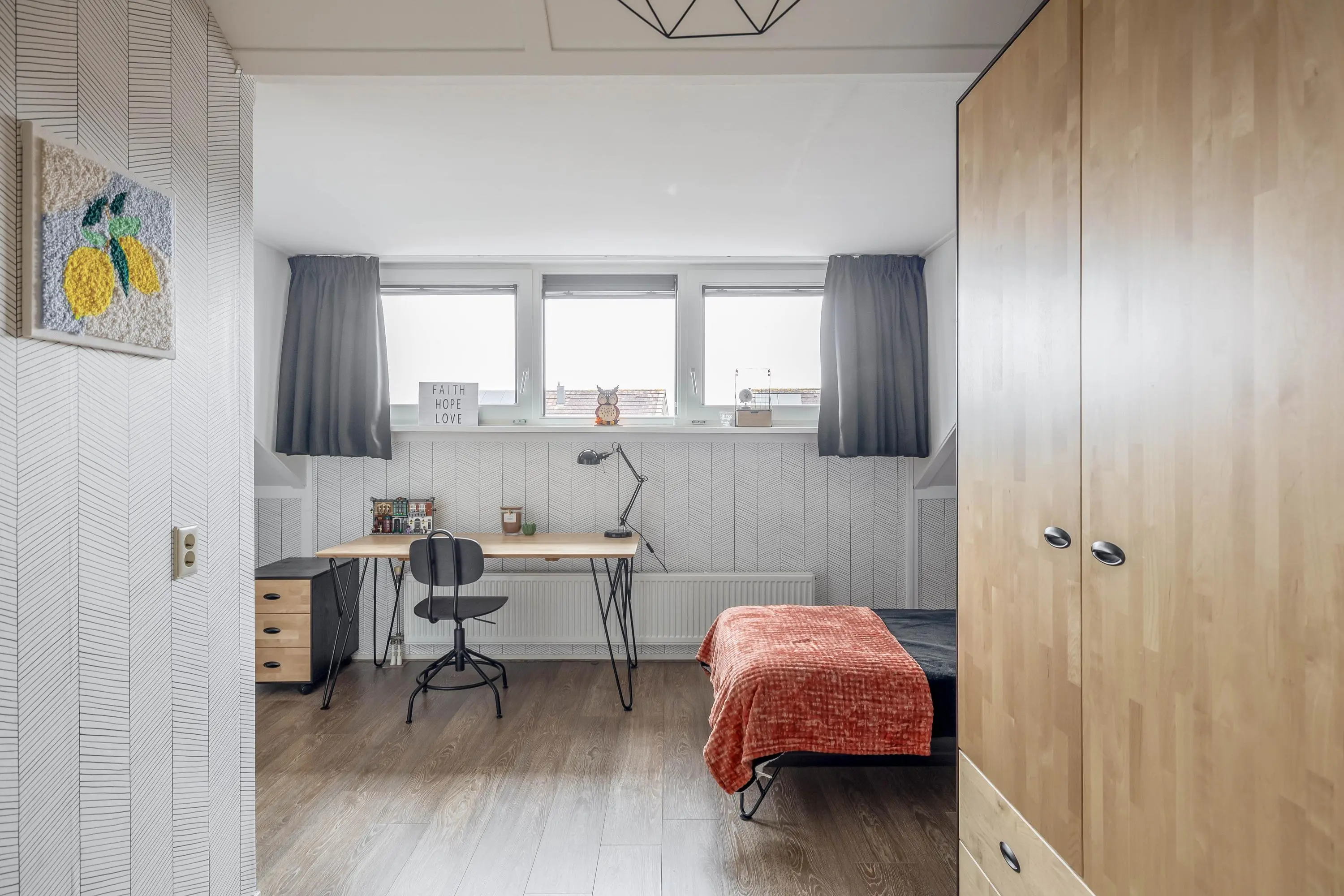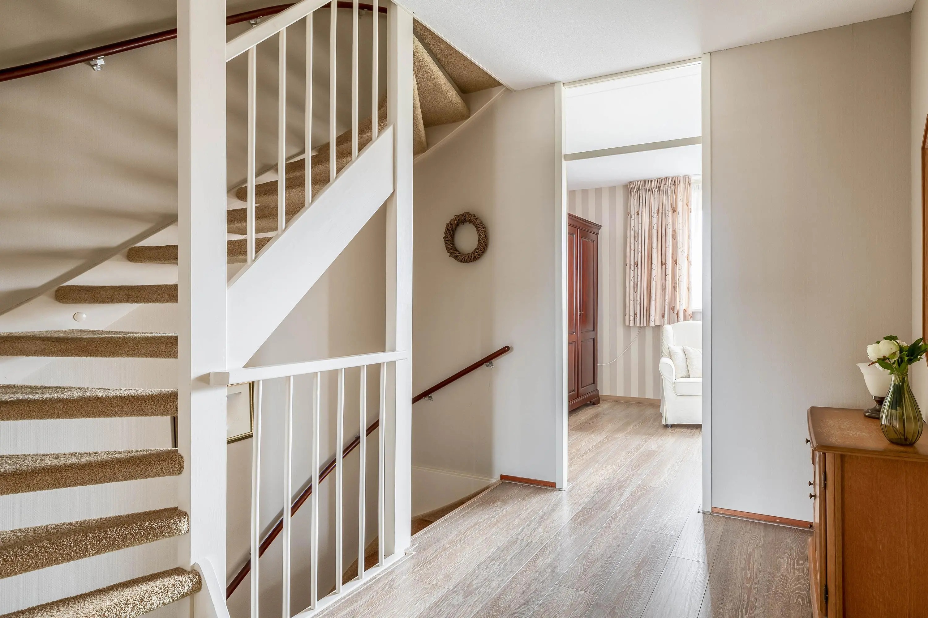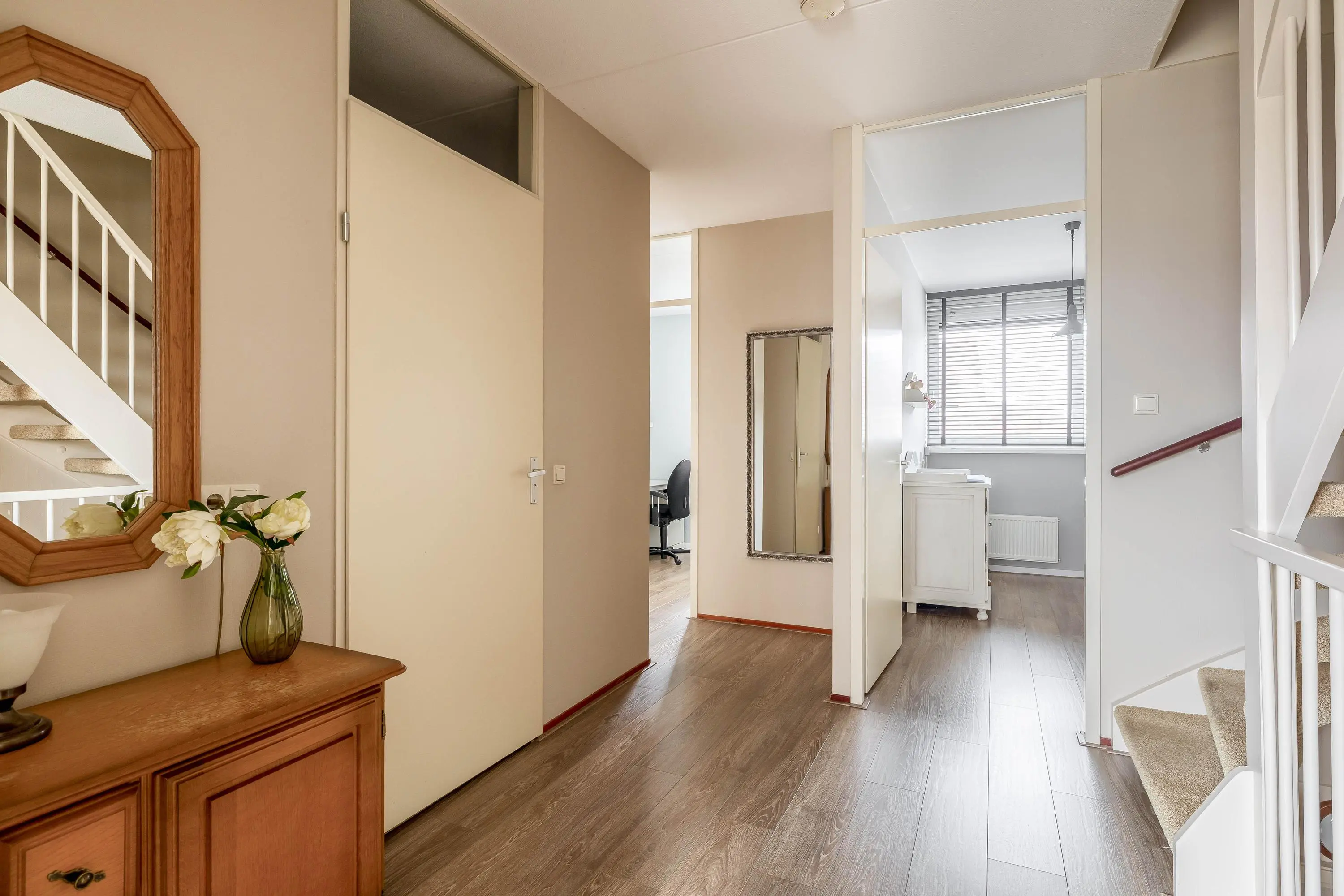 Alle slaapkamers zijn voorzien van laminaatvloeren, behang en rolluiken.