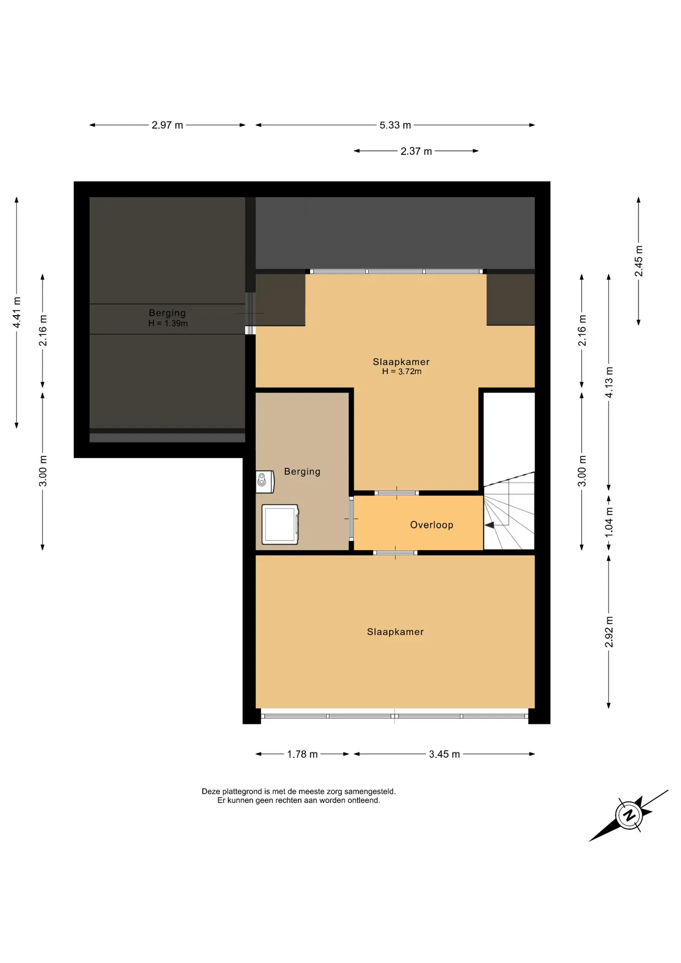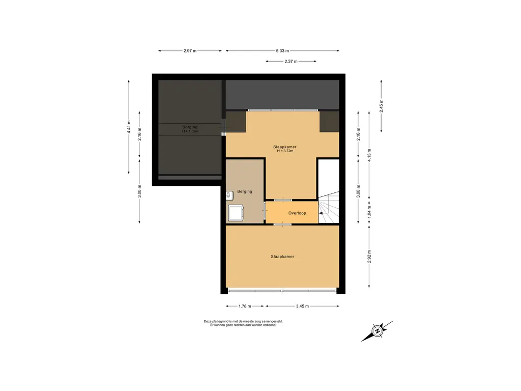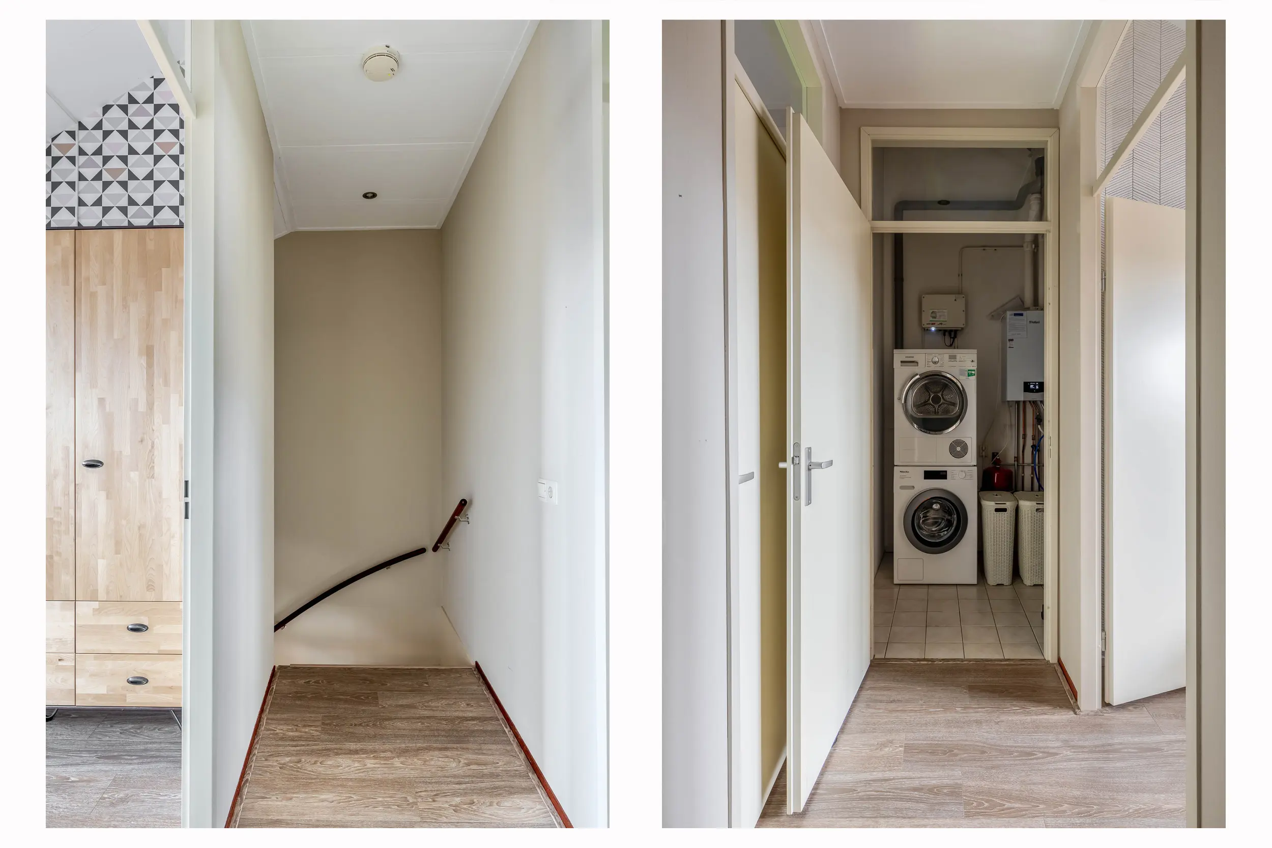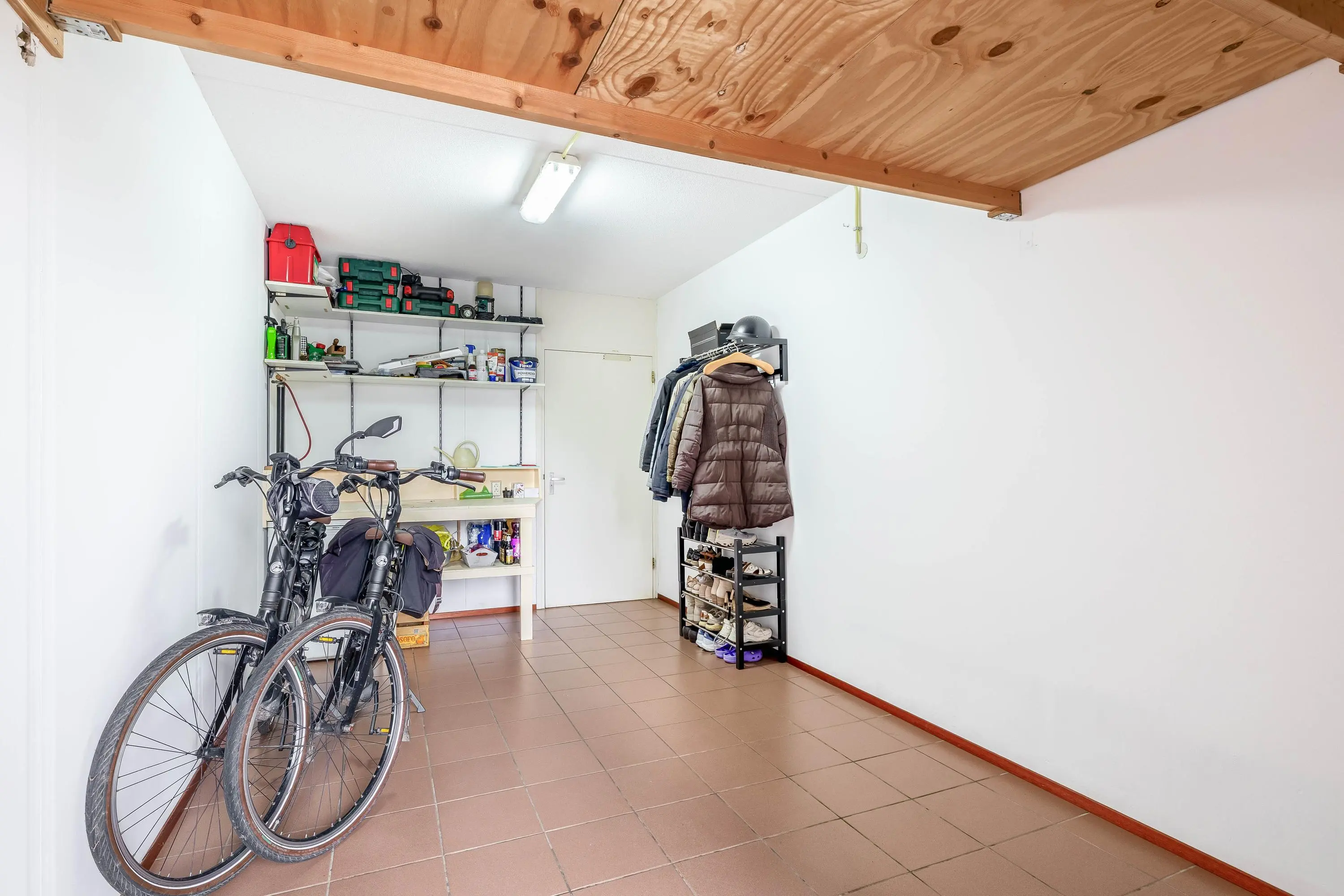 Op deze verdieping is daarnaast veel bergruimte aanwezig en een aparte wasruimte met aansluitingen voor wasmachine en droger en de opstelling van de cv-ketel.
