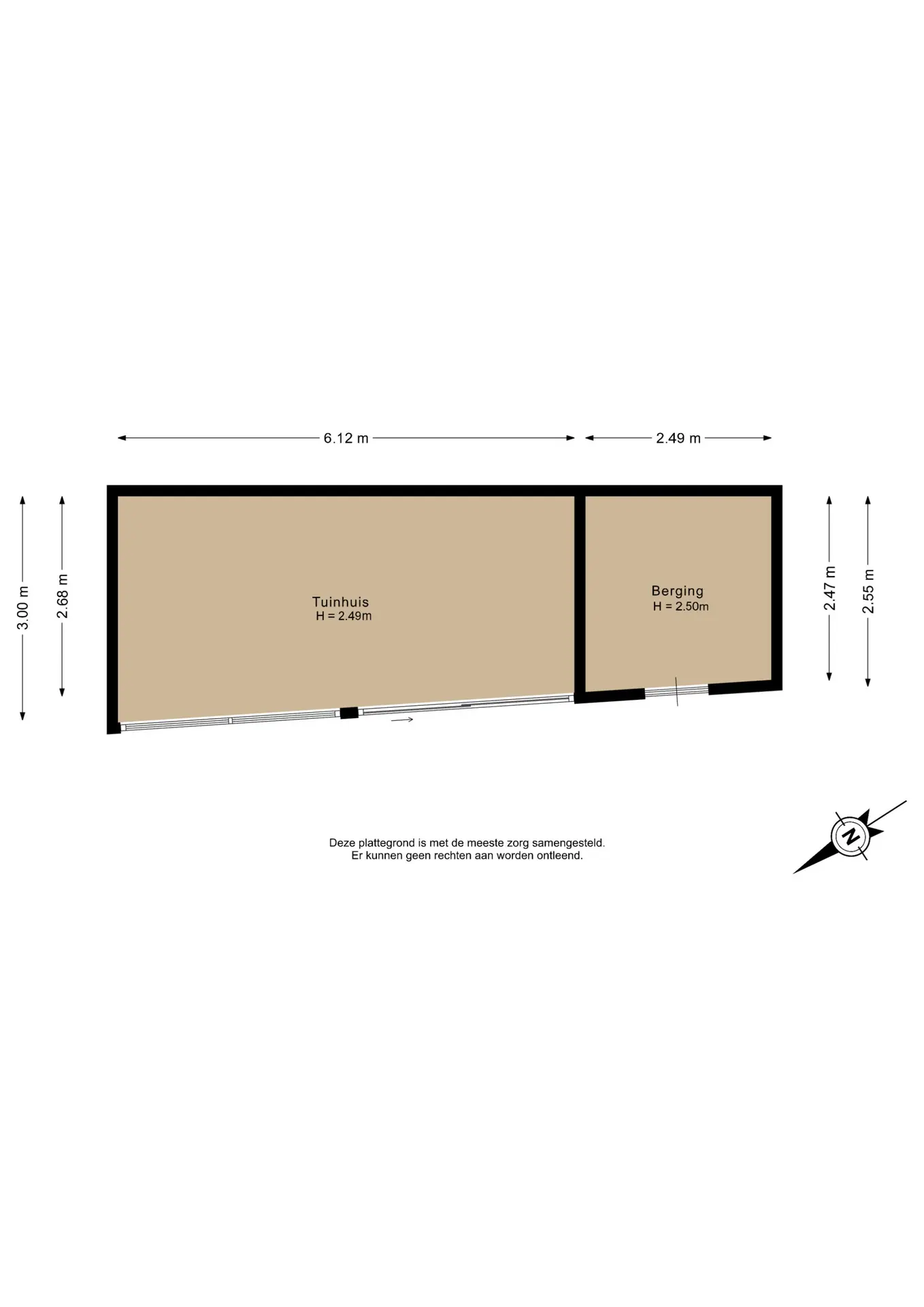 Slaapkamer 2 (achterzijde): ca. 3,12m x 2,72m