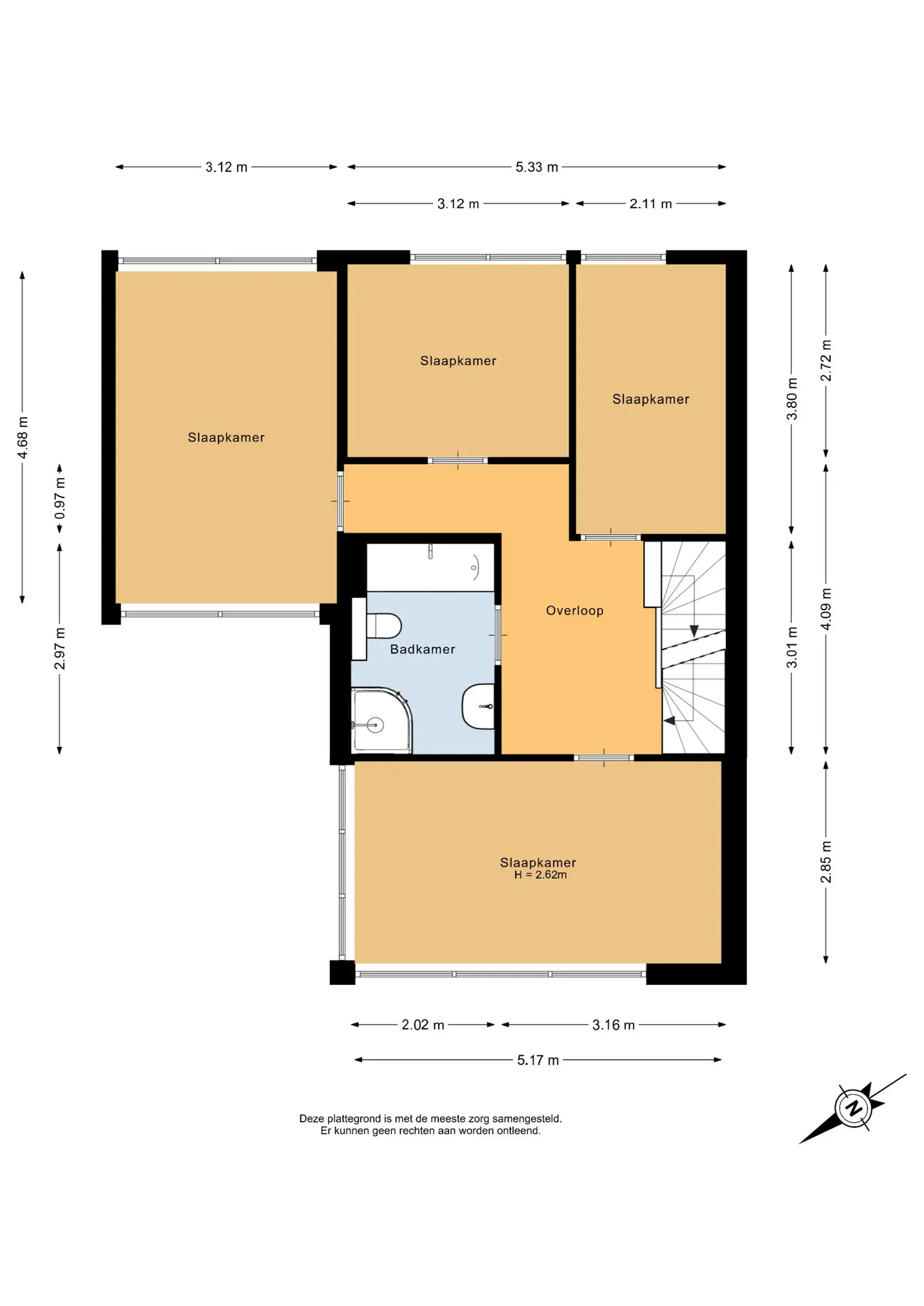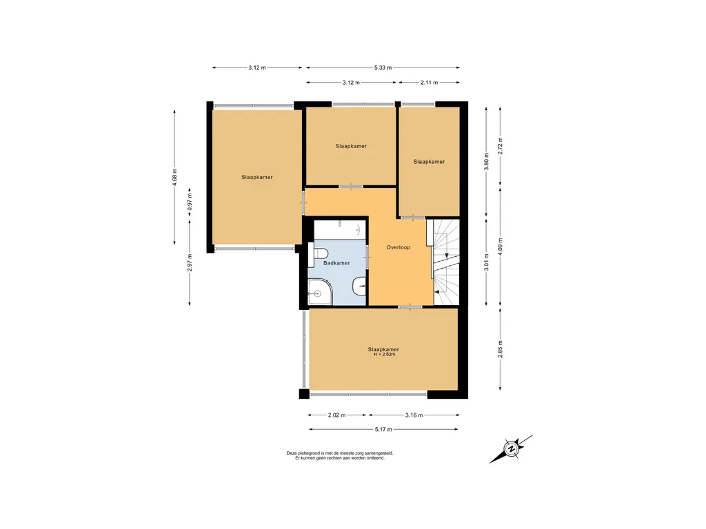 Slaapkamer 1 (voorzijde): ca. 5,17m x 2,85m