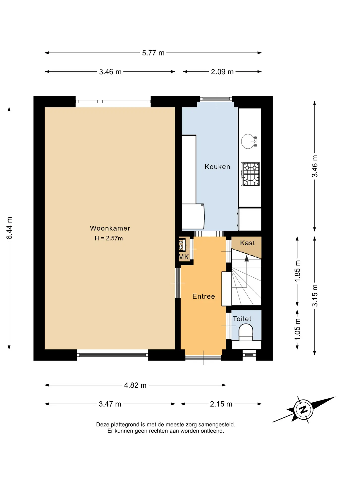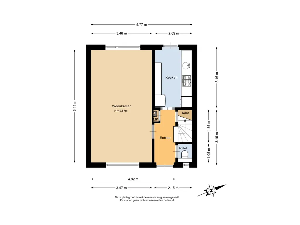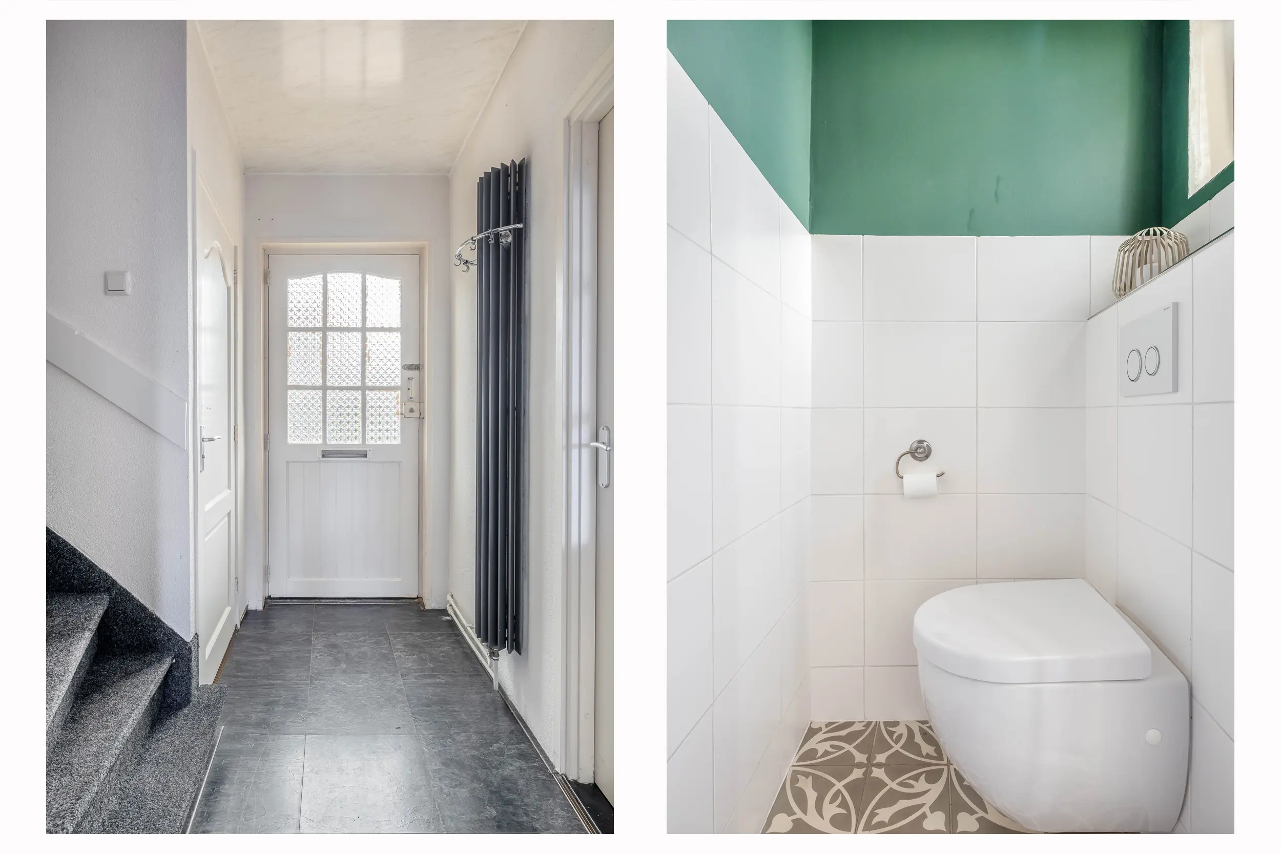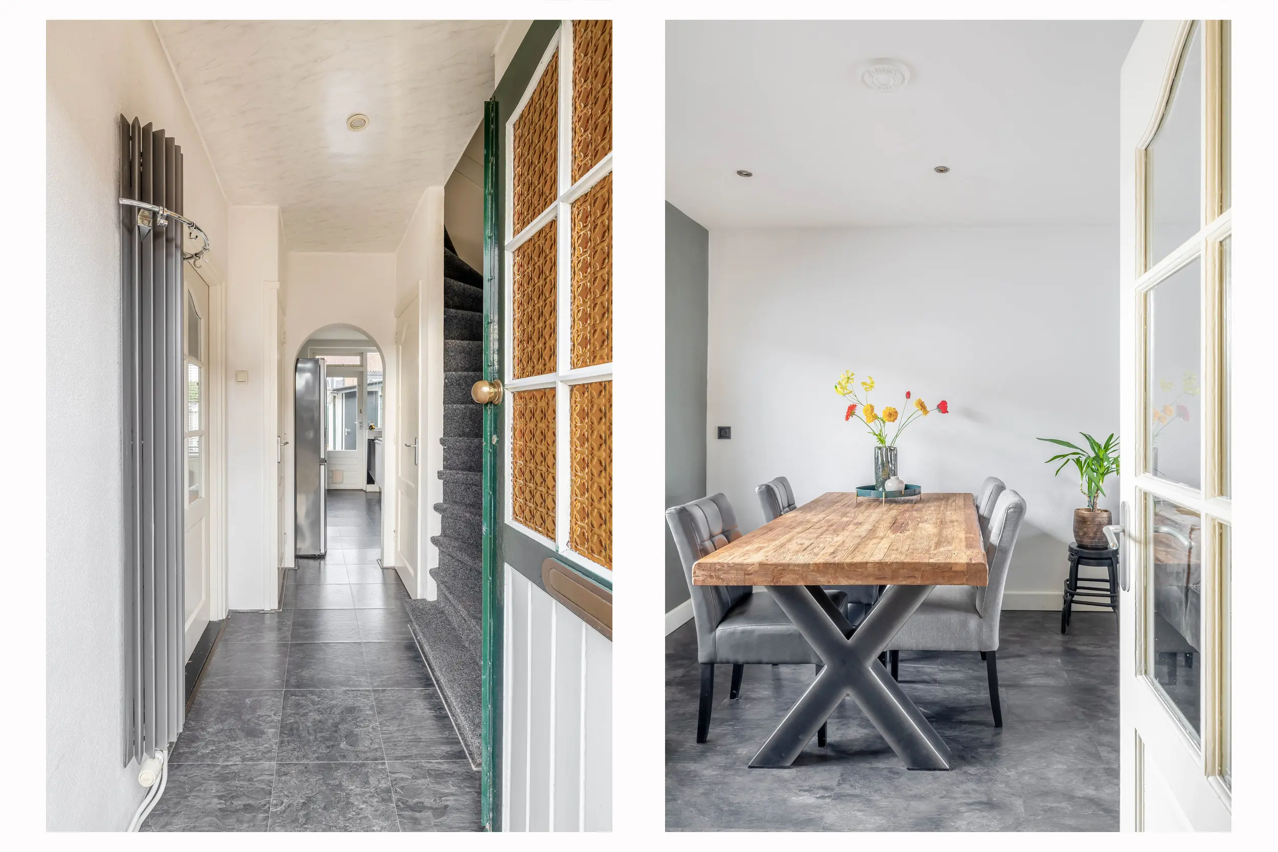 Entree/hal voorzien van een nette laminaatvloer die doorloopt over de gehele verdieping. In de hal bevinden zich de meterkast, het separate toilet en de trapopgang naar de eerste verdieping met praktische trapkast. Tevens is vanuit de hal toegang tot de leefruimte en de keuken.
