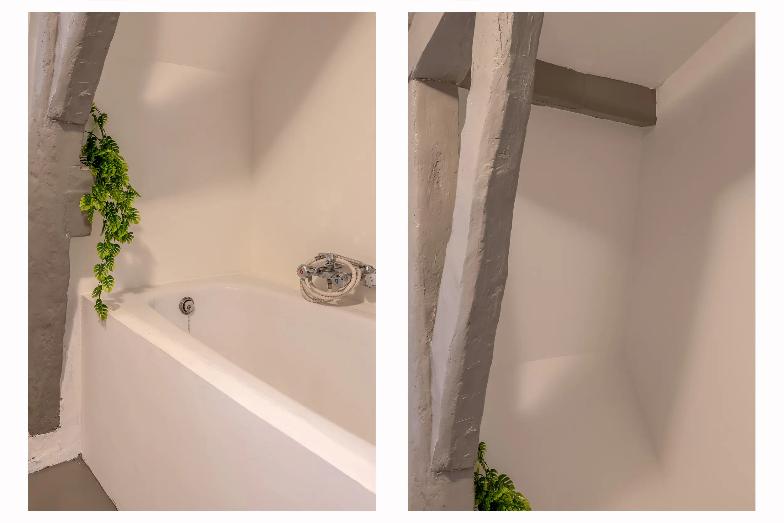 Dankzij de royale afmetingen zijn beide slaapkamers multifunctioneel in te richten, bijvoorbeeld als werkruimte, studio, extra leefruimte of het creëren van extra slaapkamers. Ook op deze verdieping zorgen de zichtbare houten balken voor een authentieke, sfeervolle uitstraling.