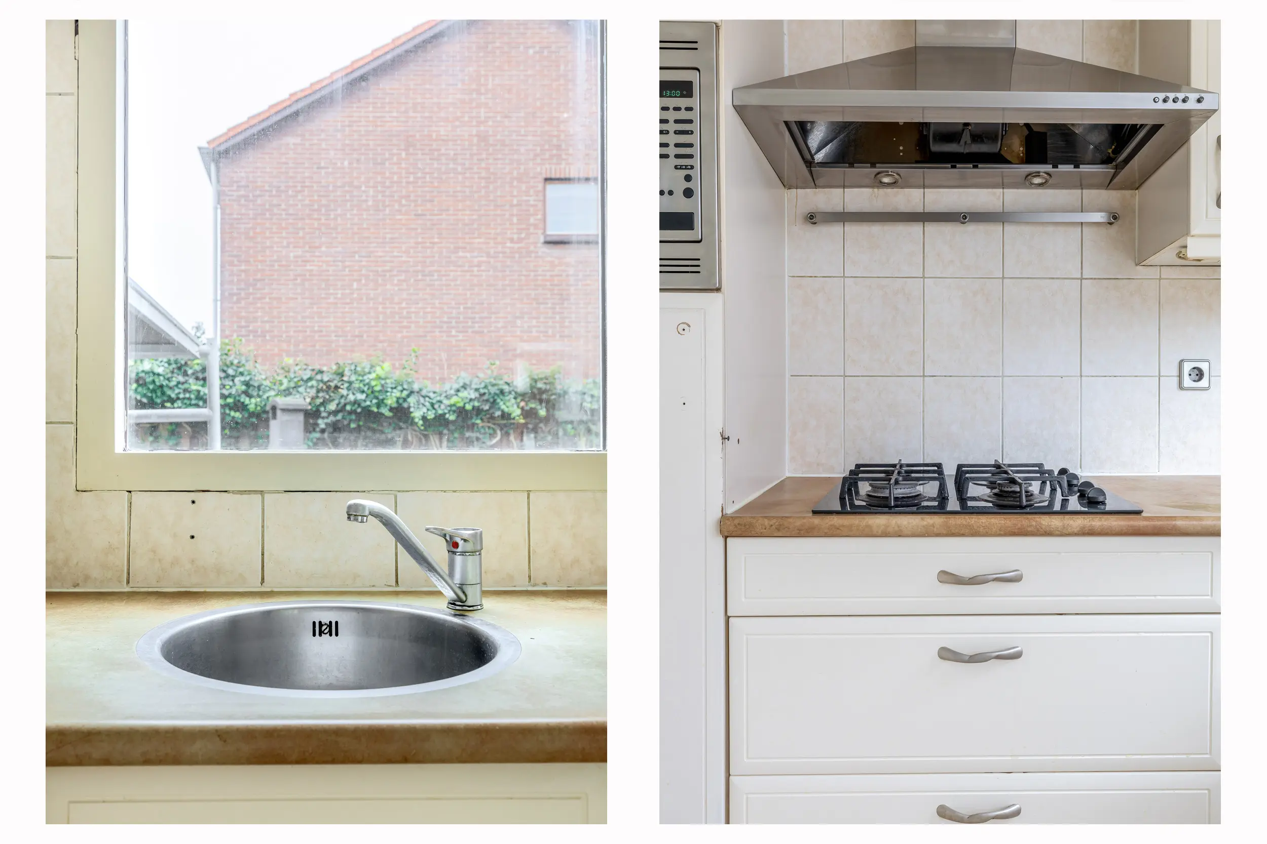 De open keuken is compleet uitgerust met een 4-pits gaskookplaat, afzuigkap, combimagnetron, vaatwasser en koelkast. Via openslaande deuren heeft u vanuit de keuken direct toegang tot de royaal aangelegde achtertuin.