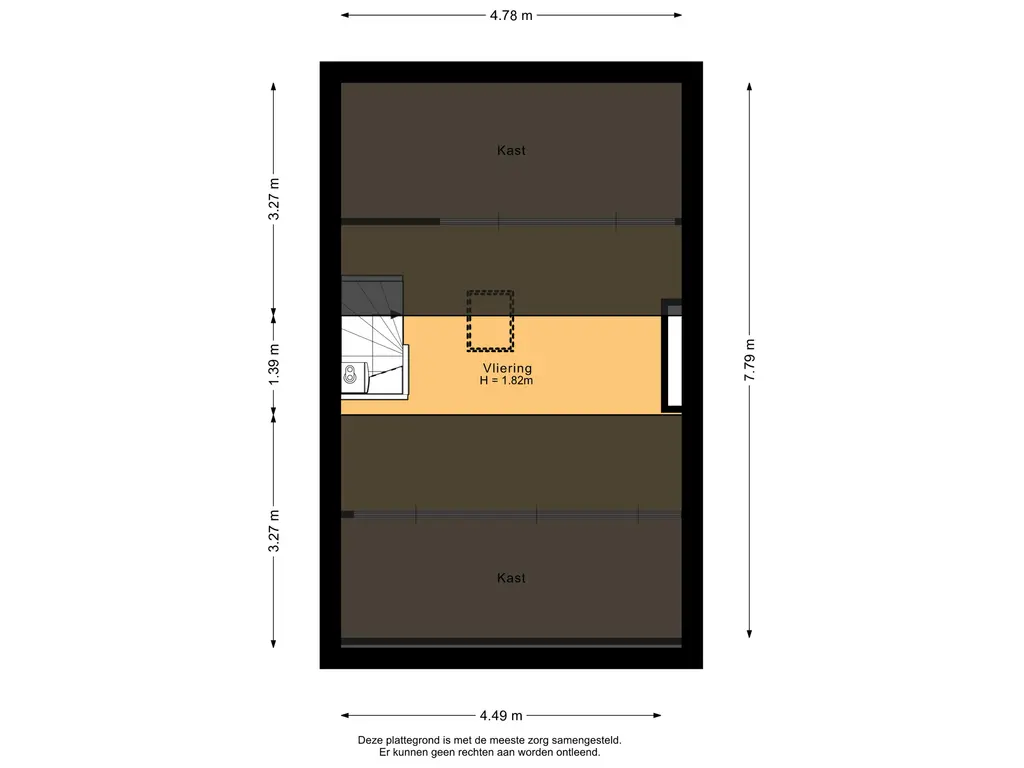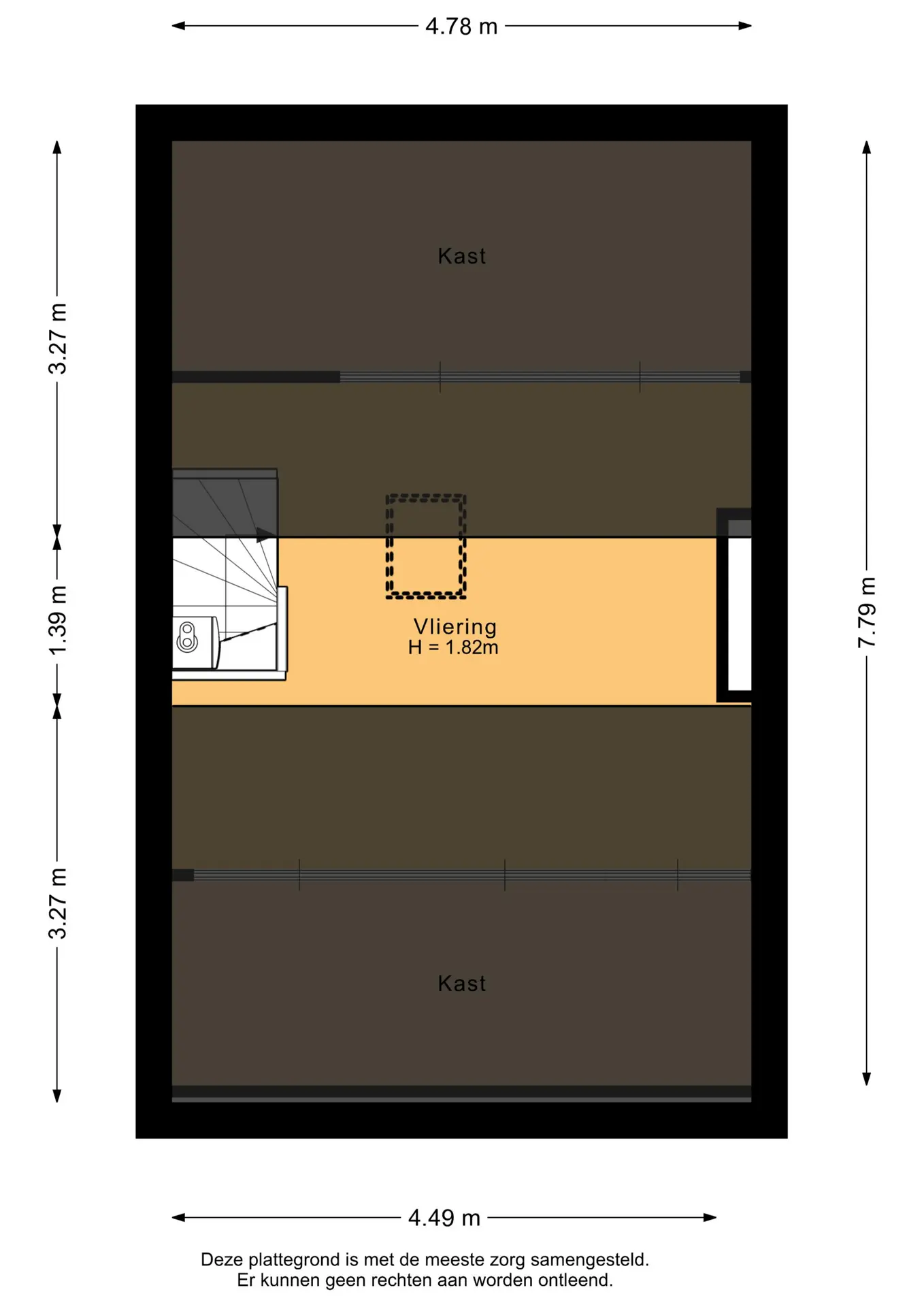 Op de ruime vliering bevindt zich de CV-opstelling. Dankzij het dakraam is er volop daglicht aanwezig. De vliering is vrij in te richten en biedt mogelijkheden voor bijvoorbeeld een werkruimte of hobbyruimte. Achter de schotten is bovendien extra opbergruimte aanwezig.