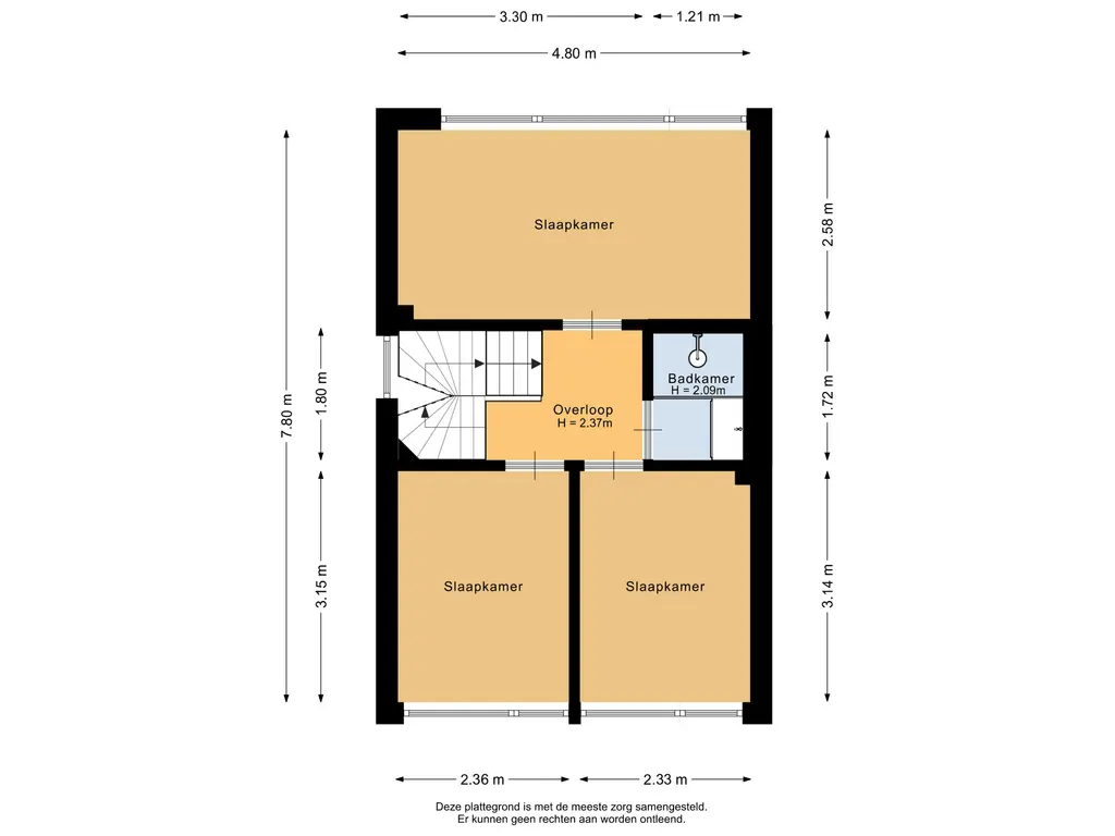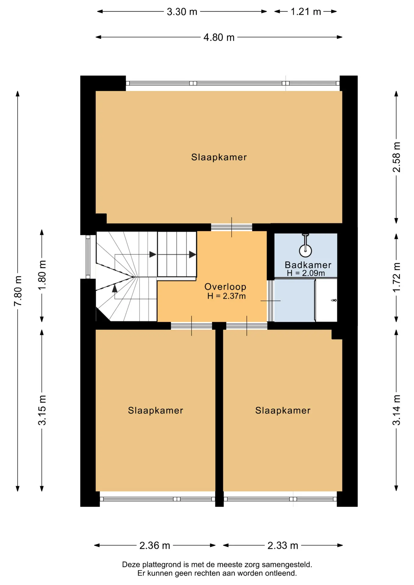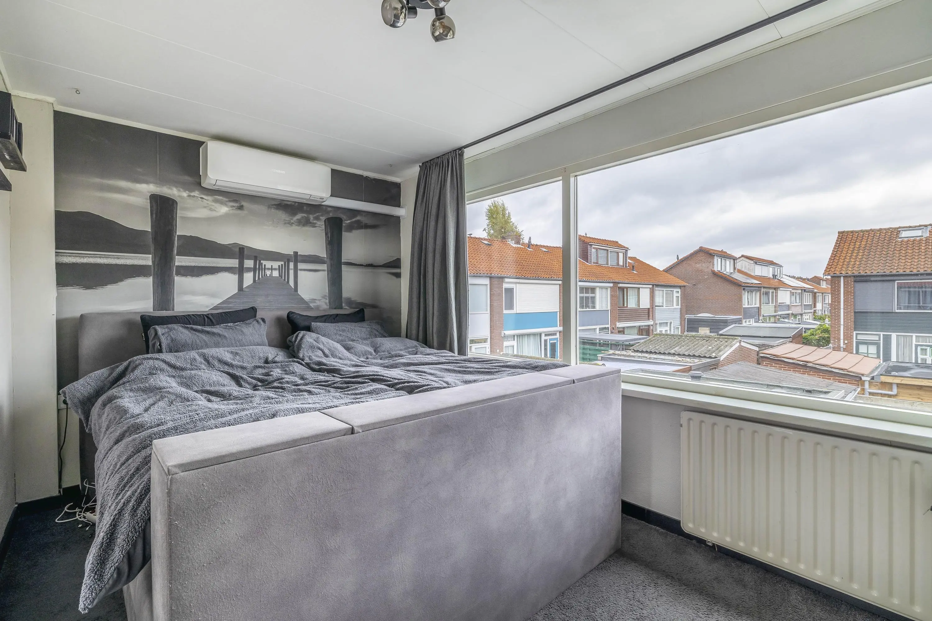 De hoofdslaapkamer bevindt zich aan de achterzijde van de woning en heeft een oppervlakte van circa 12,5m². Deze kamer is voorzien van tapijt, airconditioning en een grote raampartij die zorgt voor veel natuurlijk licht. De twee overige slaapkamers liggen aan de voorzijde van de woning, zijn beide ongeveer 7,5m² groot en afgewerkt met laminaatvloeren.